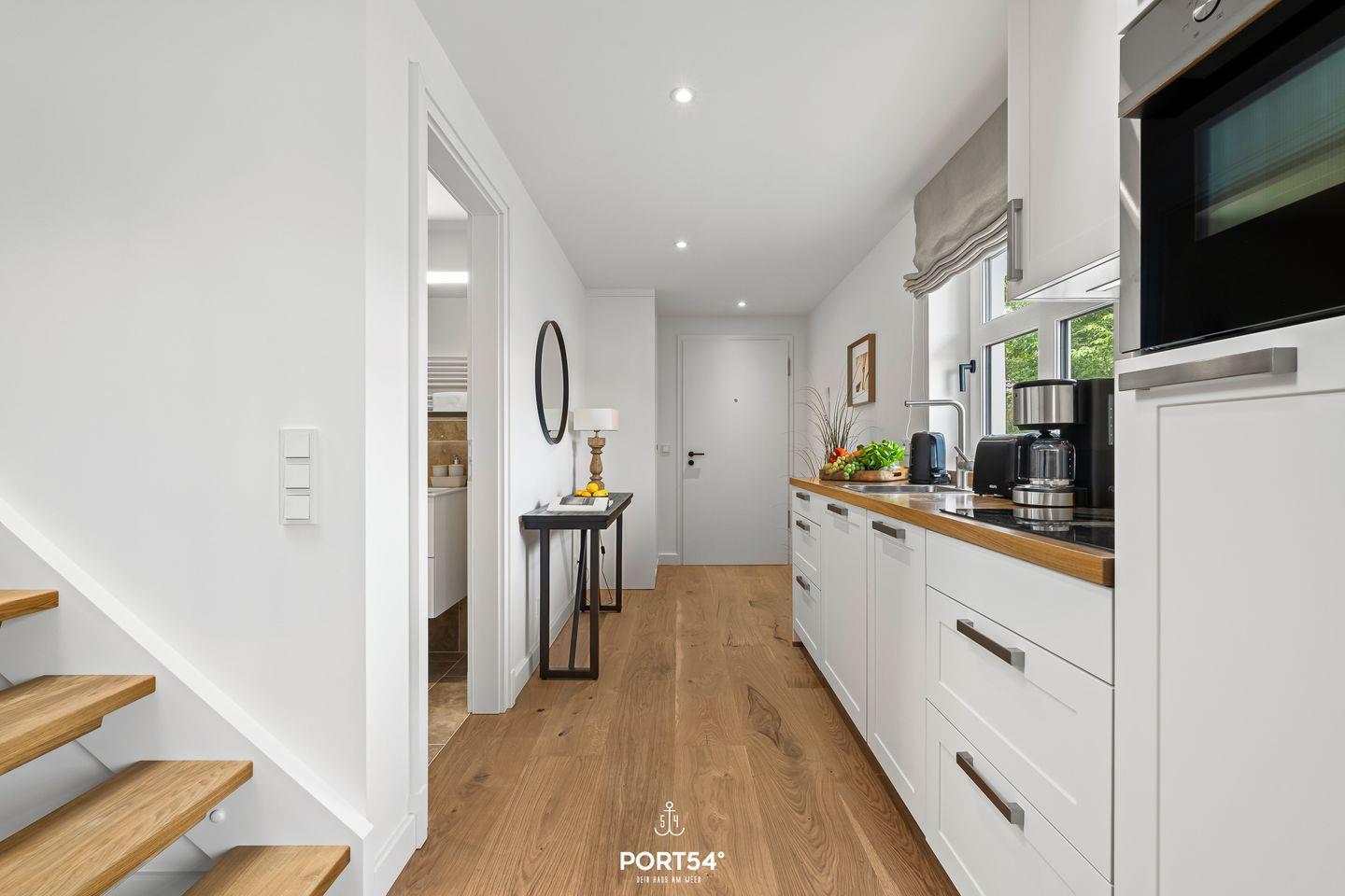 Auf großzügigen 96?m² Wohnfläche im ersten Obergeschoss bietet die Wohnung Platz für bis zu drei Personen. Die helle, geschmackvoll eingerichtete Wohnung überzeugt mit einem offenen Wohnbereich und einer voll ausgestatteten Design-Küche: Induktionskochfeld, Backofen, Spülmaschine, Kühlschrank mit Gefrierfach und vieles mehr – ideal für Genießer.
