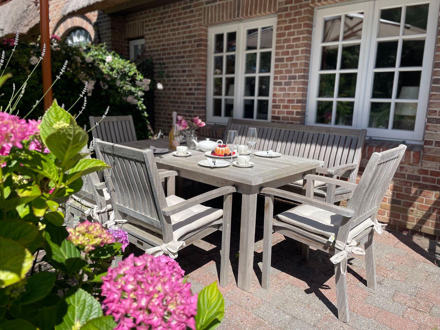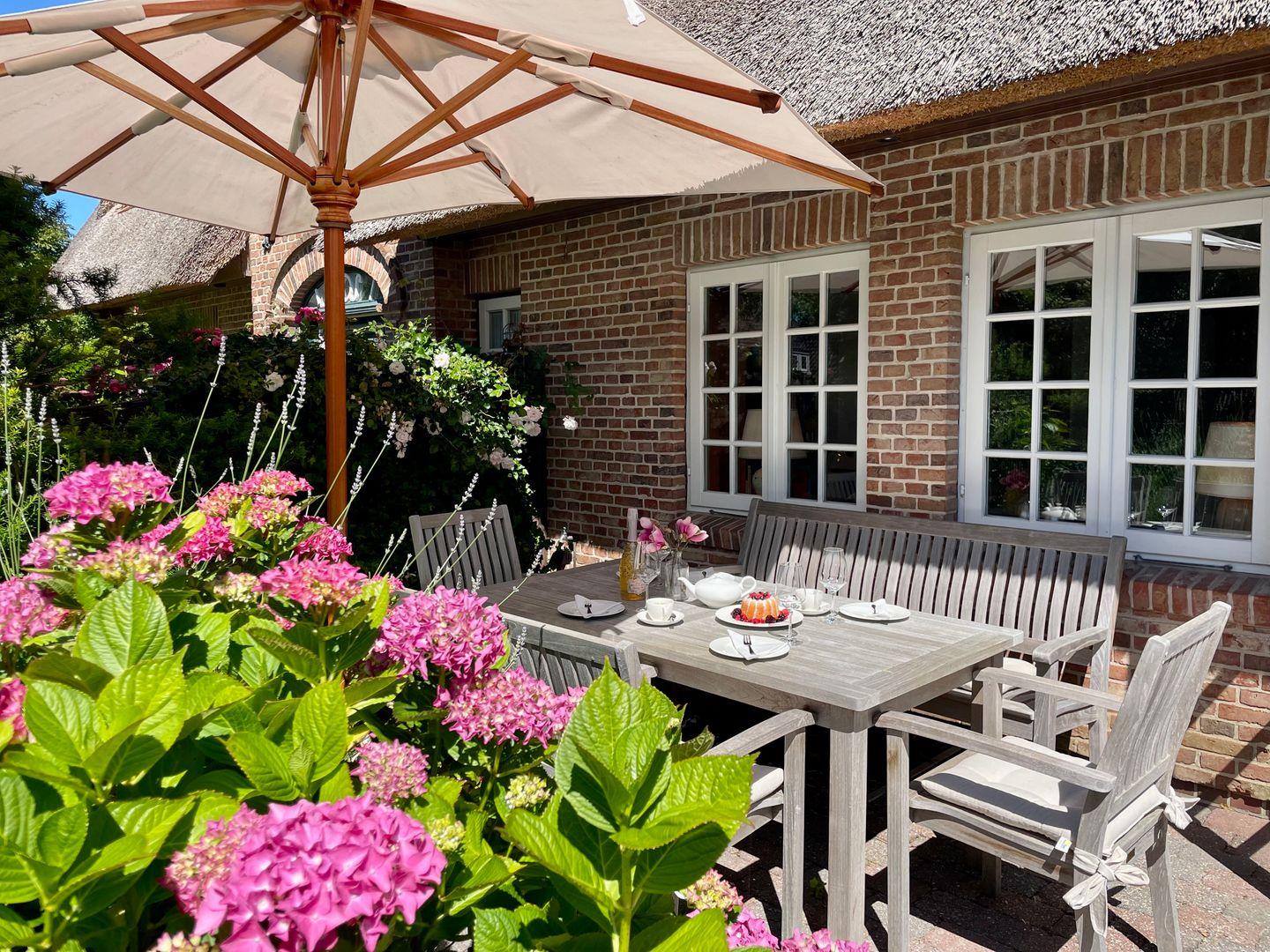Gemütliches Ferienhaus unter Reet mit Sauna, Terrasse und Garten in ruhiger Lage nahe dem Morsumer Wattenmeer auf Sylt.