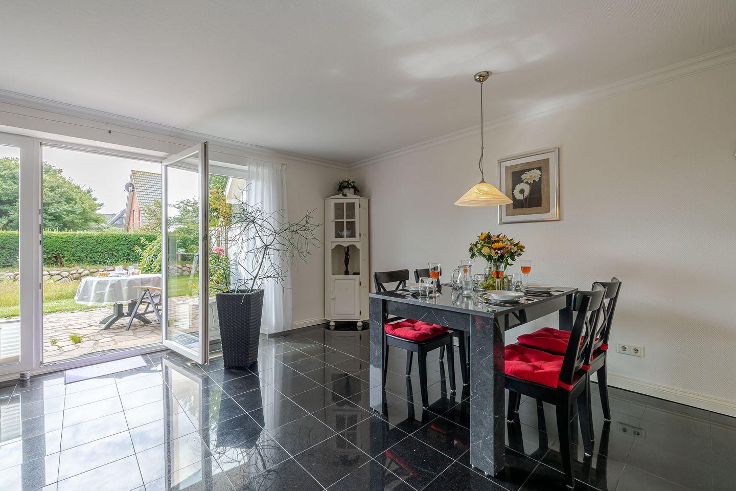 Das Haus wurde 2001 erbaut und liegt im ruhigen, grünen Altwesterland. Von hier aus sind es nur 10 Gehminuten bis zur Westerländer Innenstadt und 15 Minuten bis zum Strand. Die Lage ist ein idealer Ausgangspunkt, um die vielseitigen Freizeitmöglichkeiten der Insel zu entdecken – von ausgedehnten Spaziergängen über Radtouren bis hin zu kulinarischen Entdeckungen in den nahegelegenen Restaurants.