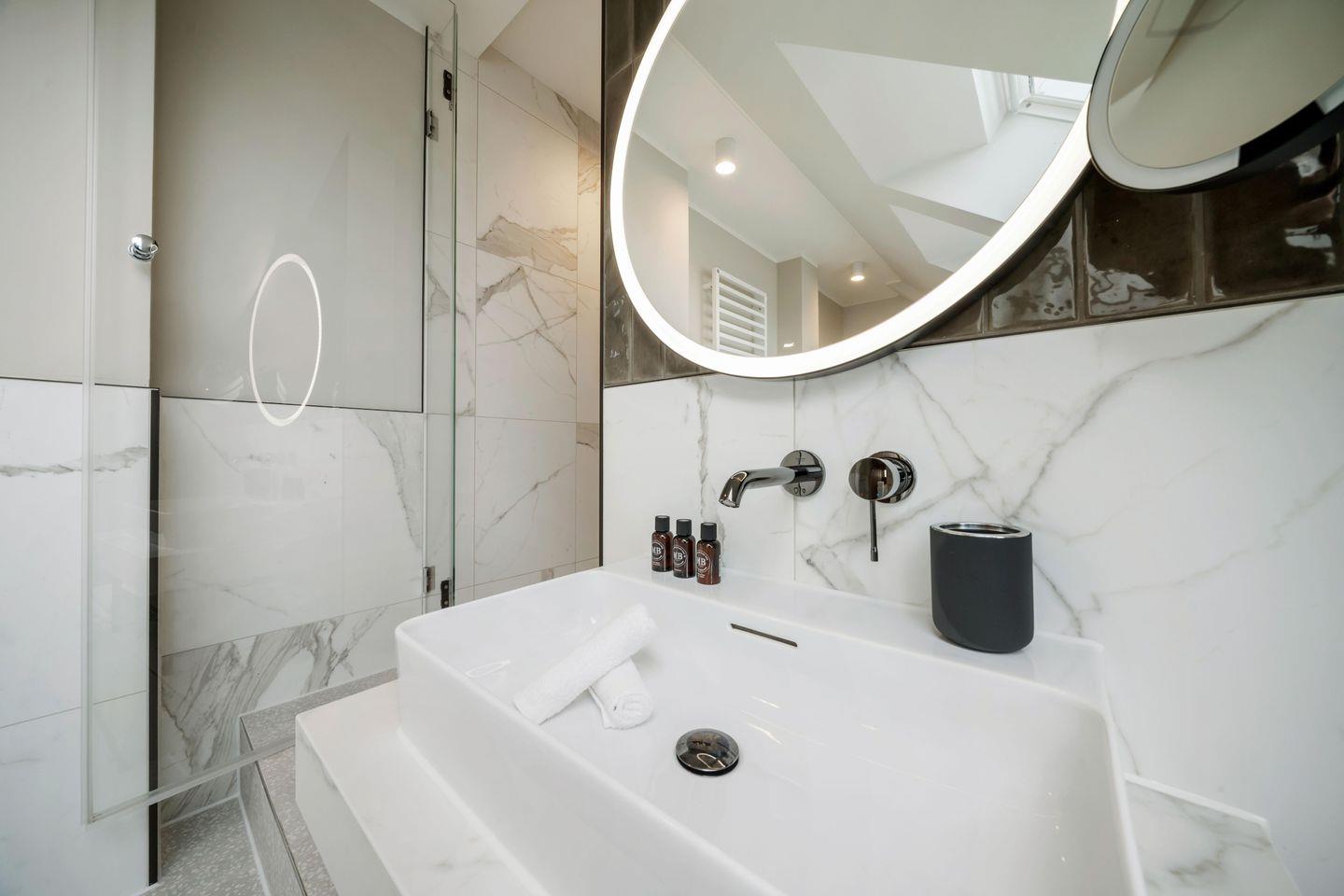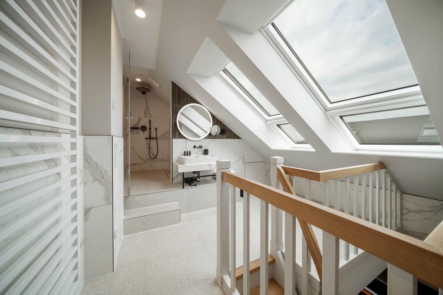 Für besondere Wohlfühlmomente sorgt die eigene KLAFS-Sauna – perfekt nach einem langen Strandspaziergang oder an kühleren Tagen. Das modern gestaltete Badezimmerzimmer mit großzügiger Dusche ist ebenso lichtdurchflutet und luxuriös gestaltet. Ein separates WC sorgt für extra Privatsphäre.