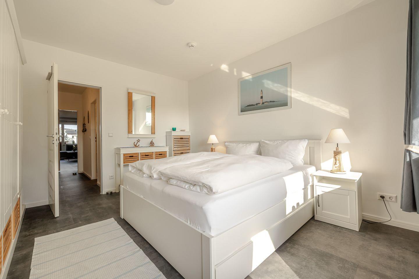 Die Wohnung bietet ein separates Schlafzimmer, ein helles Wohnzimmer mit gemütlicher Sofaecke und zwei Balkonen. Vom Schlafzimmer gelangen Sie direkt auf den Ostbalkon, wo Sie den Tag mit der Morgensonne beginnen können. Der Westbalkon ist an das Wohnzimmer angeschlossen und eignet sich perfekt für ein Glas Wein bei Sonnenuntergang. So genießen Sie Sylt von seinen schönsten Seiten – gleich zweimal am Tag.