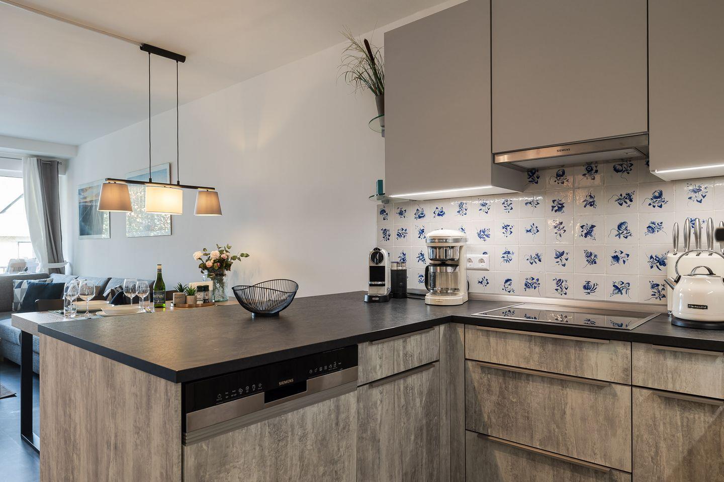 Die Küche ist großzügig ausgestattet und lässt keine Wünsche offen. Induktionsherd, Backofen, Geschirrspüler, Nespresso- und Filterkaffeemaschine, Mikrowelle und Toaster stehen Ihnen zur Verfügung, sodass Sie Ihre Lieblingsgerichte auch im Urlaub mühelos zubereiten können. Das Wohnzimmer ist der ideale Ort, um den Abend in entspannter Runde zu verbringen, und sowohl hier als auch im Schlafzimmer sorgt jeweils ein eigener Fernseher für Unterhaltung. WLAN ist selbstverständlich im gesamten Apartment verfügbar.