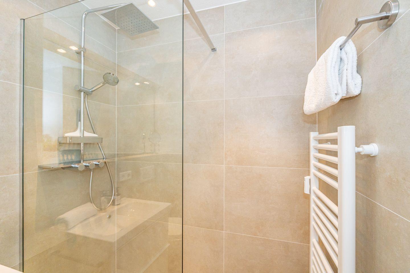 Im Wohnbereich erwartet Sie eine gemütliche Sofaecke mit Essbereich, ergänzt durch einen Esstisch. Für Unterhaltung sorgen ein Fernseher, Radio und kostenfreies WLAN. Der Kamin dient lediglich der Dekoration und spendet keine Wärme. Im separaten Schlafzimmer finden Sie ein komfortables Doppelbett ( 180x200m) und einen weiteren Fernseher. Das Badezimmer ist modern mit einer bodengleichen Dusche, Waschbecken, WC, Spiegel, Kosmetikspiegel, Haartrockner ausgestattet. Besonders hervorzuheben ist der Balkon, der mit Gartenmöbeln ausgestattet ist und zum Verweilen im Freien einlädt.