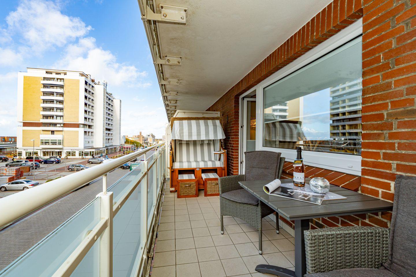 Moderne Ferienwohnung mit Balkon und Strandkorb