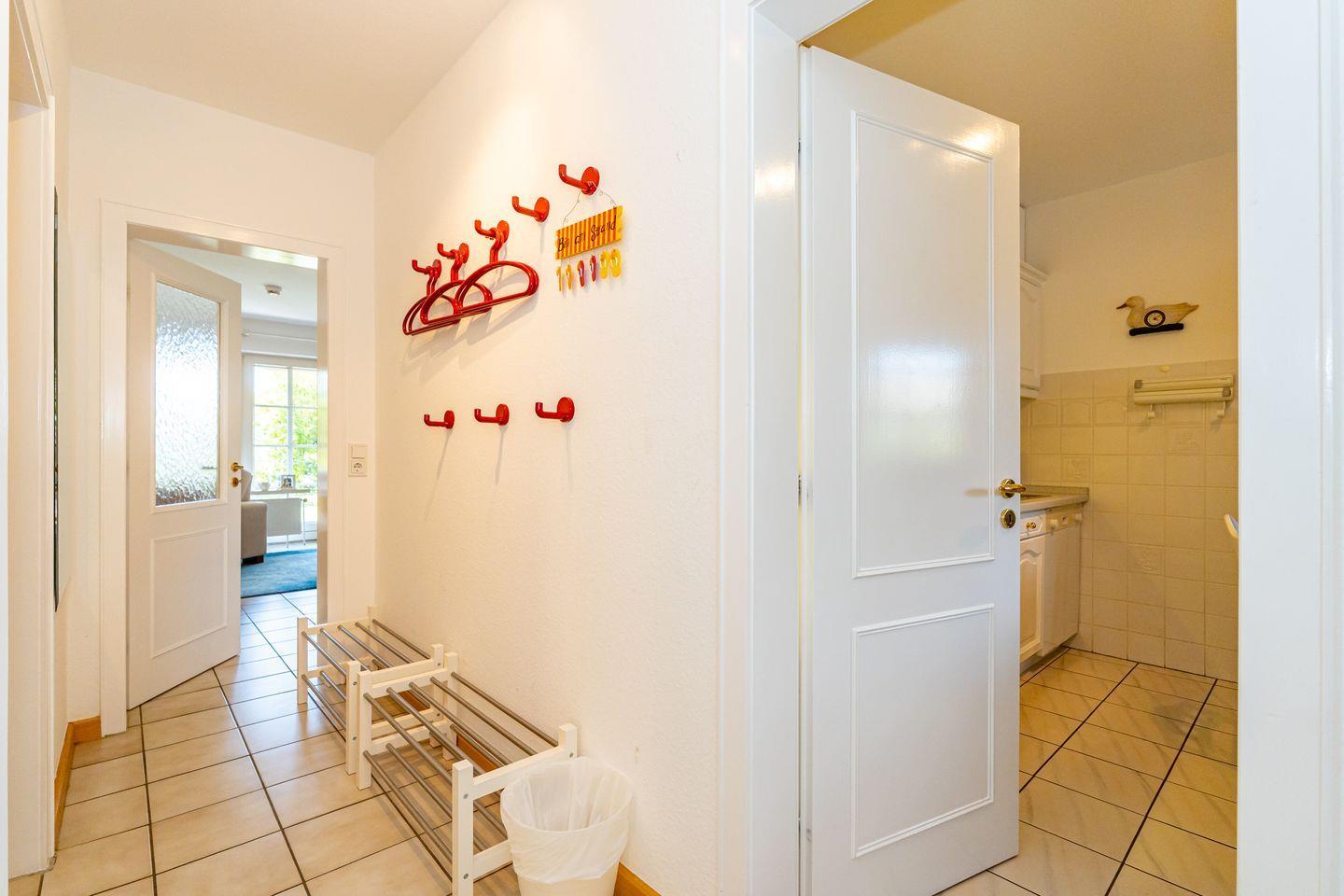 Die Ferienwohnung Rüm hart erstreckt sich über zwei Etagen auf 110qm. Der offene, einladende Wohnbereich ist mit einer Sofaecke, einem Essbereich und einem TV ausgestattet. Von hier aus haben Sie Zutritt zur Terrasse mit Gartenmöbeln (saisonal). Die geschlossene Küche lässt keine Wünsche offen. Sie ist ausgestattet mit einem Ceranherd, Backofen, Kühlschrank mit Gefrierfach, Geschirrspüler, Kaffeefiltermaschine, Wasserkocher, Toaster einen Esstisch. Ebenfalls im Erdgeschoss befindet sich ein Badezimmer mit WC, Waschbecken und Badewanne. Über eine Treppe gelangen Sie ins Souterrain wo sich zwei Schlafzimmer befinden. Das eine Schlafzimmer verfügt über 3 Schlafplätze (1 Doppelbett und 1 Einzelbett), TV und Kleiderschrank und das andere Schlafzimmer verfügt über 2 Schlafplätze (1 Doppelbett) und Kleiderschrank. Auf dieser Ebene befindet sich ein Badezimmer mit WC, Waschbecken und Dusche. Für längere Aufenthalte oder bei Bedarf nutzen Sie die gemeinschaftlich zugängliche Waschmaschine und den Trockner. Zu der Wohnung gehört ein PKW-Stellplatz.