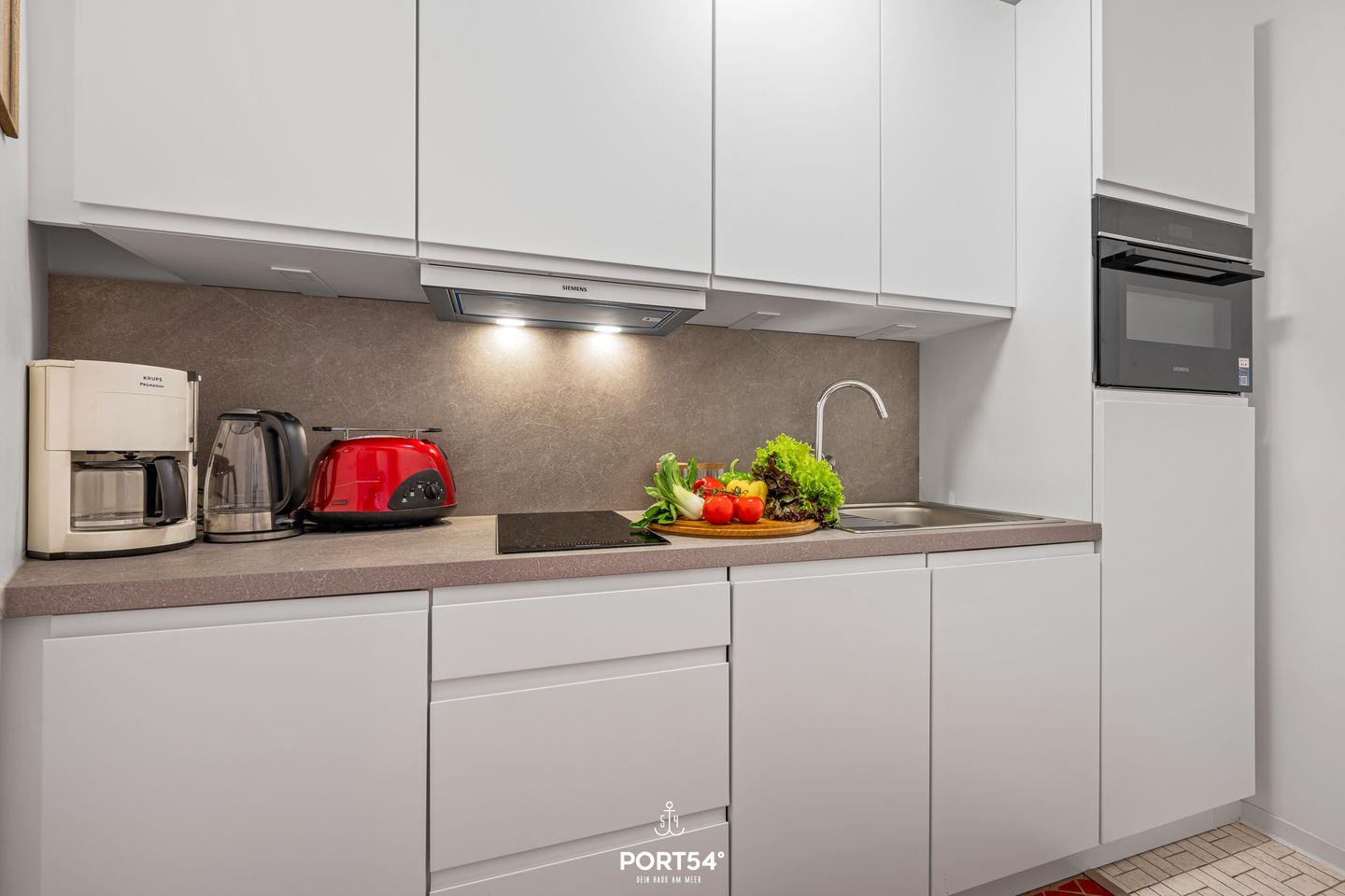 Bitte beachte, dass die Wohnung für 2 Erwachsene und 1 Kind ausgelegt ist, da das Bett im Schlafzimmer 130x190 cm misst und das Schlafsofa 140x200 cm.