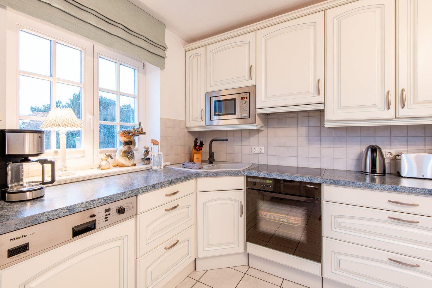 Die offene Küche ist modern und bestens ausgestattet – mit Cerankochfeld, Backofen, Mikrowelle, Geschirrspüler und allem, was Sie für die Zubereitung Ihrer Lieblingsgerichte benötigen. Ob ein kleines Frühstück oder ein gemütliches Dinner – hier wird Kochen zum Vergnügen.