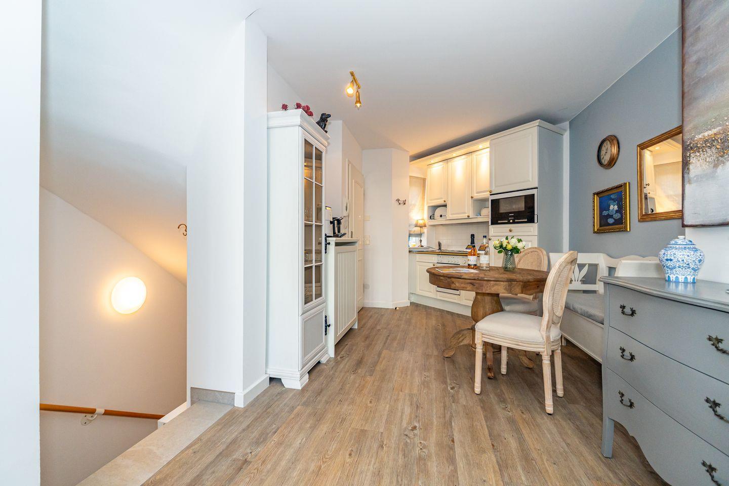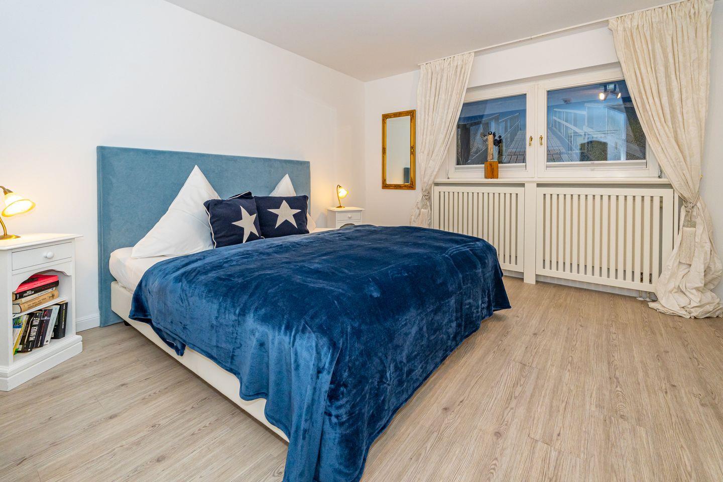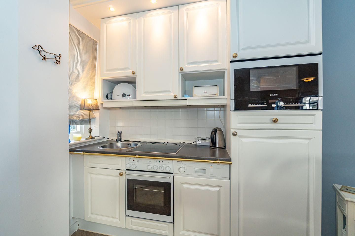Diese komfortable, neu sanierte Ferienwohnung unter Reet, ist zentral in Westerland gelegen und befindet sich im bekannten Altstadttor. Die Ferienwohnung erstreckt sich über zwei Ebenen. Im Erdgeschoss befindet sich der Wohn- und Essbereich, ausgestattet mit TV, einem gemütlichen Sofa und einem Essplatz. Die offene Küche lässt keine Wünsche offen: Backofen, Cerankochfeld, Mikrowelle, Spülmaschine, Nespresso Maschine, Toaster, Wasserkocher und Kühlschrank gehören zur Ausstattung. Vom Wohn- und Essbereich haben Sie Zutritt zur Terrasse mit Gartenmöbeln und typischen Sylter Strandkorb (saisonal). Über eine Treppe gelangen Sie ins Souterrain, dort befindet sich ein geräumiges Schlafzimmer mit Doppelbett und Kleiderschrank. Ebenfalls auf dieser Ebene befindet sich das Badezimmer mit bodengleicher Dusche, Waschbecken und WC. In der Ferienwohnung befindet sich ein Waschtrockner zur Eigennutzung. Am Haus steht Ihnen ein PKW Stellplatz kostenfrei zur Verfügung.
