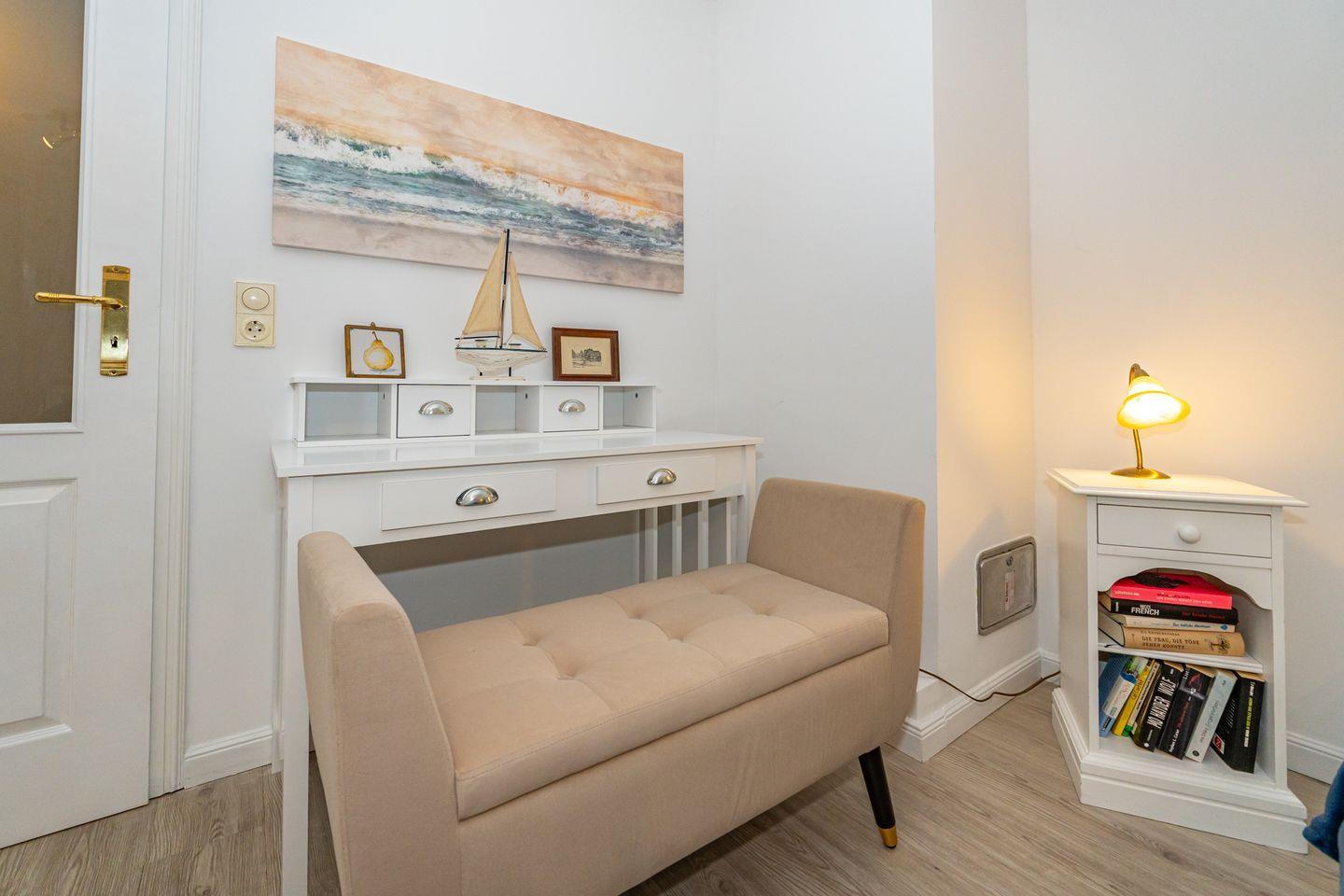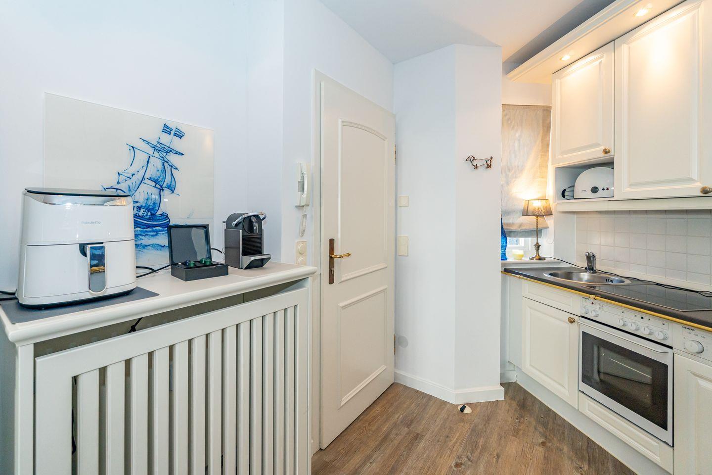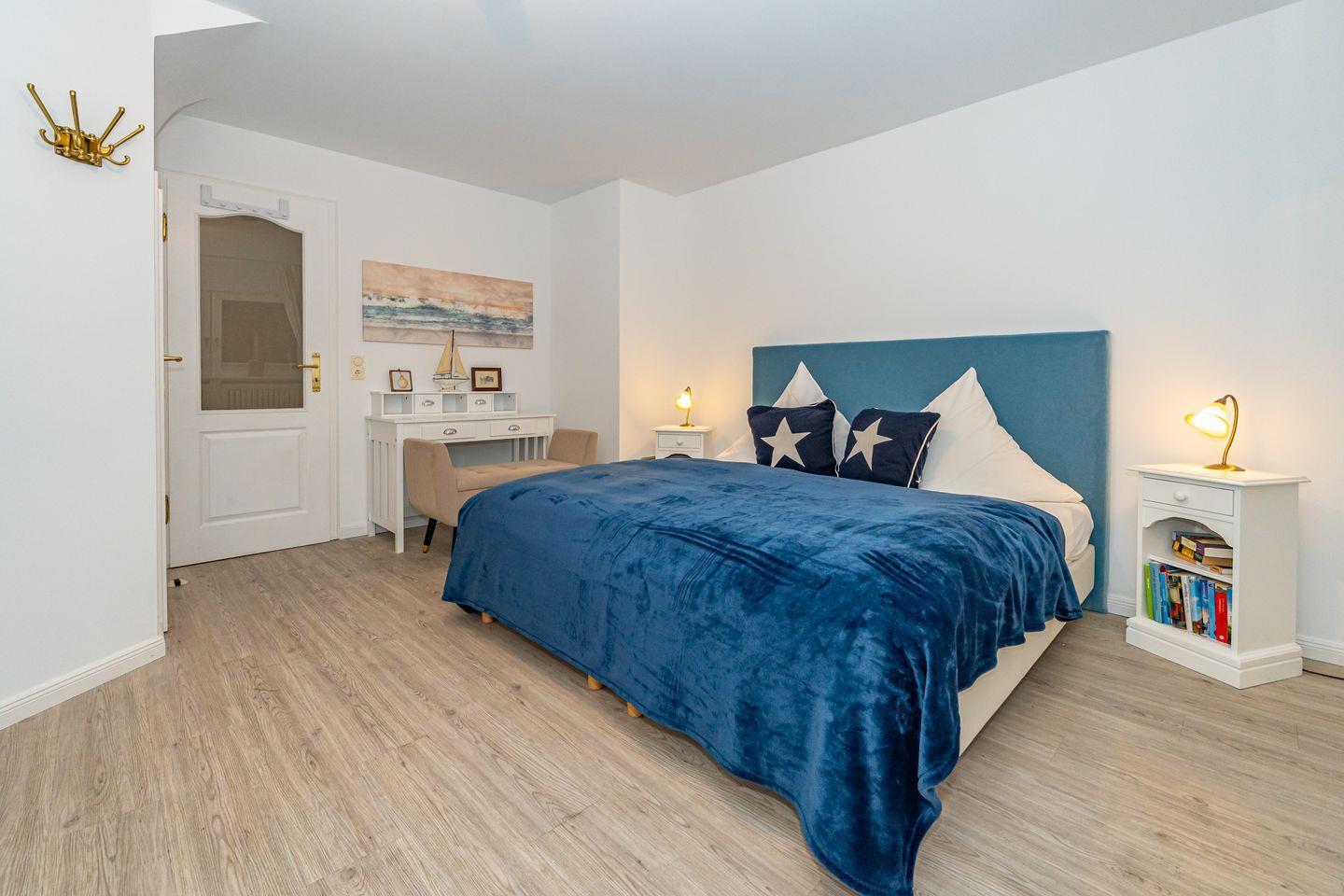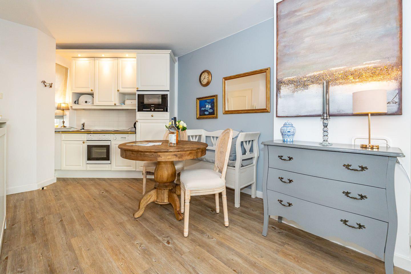 Diese komfortable, neu sanierte Ferienwohnung unter Reet, ist zentral in Westerland gelegen und befindet sich im bekannten Altstadttor. Die Ferienwohnung erstreckt sich über zwei Ebenen. Im Erdgeschoss befindet sich der Wohn- und Essbereich, ausgestattet mit TV, einem gemütlichen Sofa und einem Essplatz. Die offene Küche lässt keine Wünsche offen: Backofen, Cerankochfeld, Mikrowelle, Spülmaschine, Nespresso Maschine, Toaster, Wasserkocher und Kühlschrank gehören zur Ausstattung. Vom Wohn- und Essbereich haben Sie Zutritt zur Terrasse mit Gartenmöbeln und typischen Sylter Strandkorb (saisonal). Über eine Treppe gelangen Sie ins Souterrain, dort befindet sich ein geräumiges Schlafzimmer mit Doppelbett und Kleiderschrank. Ebenfalls auf dieser Ebene befindet sich das Badezimmer mit bodengleicher Dusche, Waschbecken und WC. In der Ferienwohnung befindet sich ein Waschtrockner zur Eigennutzung. Am Haus steht Ihnen ein PKW Stellplatz kostenfrei zur Verfügung.