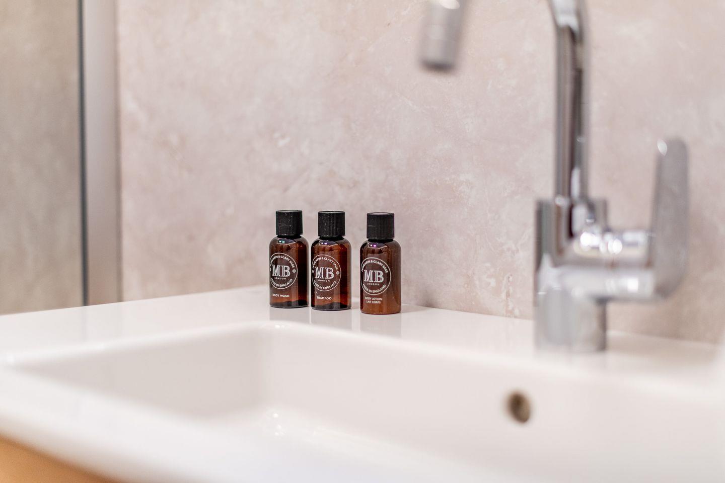 Das Badezimmer ist mit einer bodengleichen Dusche ausgestattet und verspricht dank seines modernen Stils einen angenehmen Start in den Tag – funktional und komfortabel zugleich.