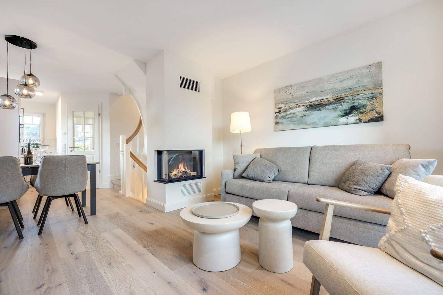 EG: Wohnbereich mit Gaskamin, TV, Wlan, Essbereich, Küche mit Geschirrspüler, Induktionsherd, Backofen, Nespressomaschine, Filter-Kaffeemaschine, Gäste-WC, Garten und Terrasse mit Gartenmöbeln und Strandkorb (ca. April-Oktober)