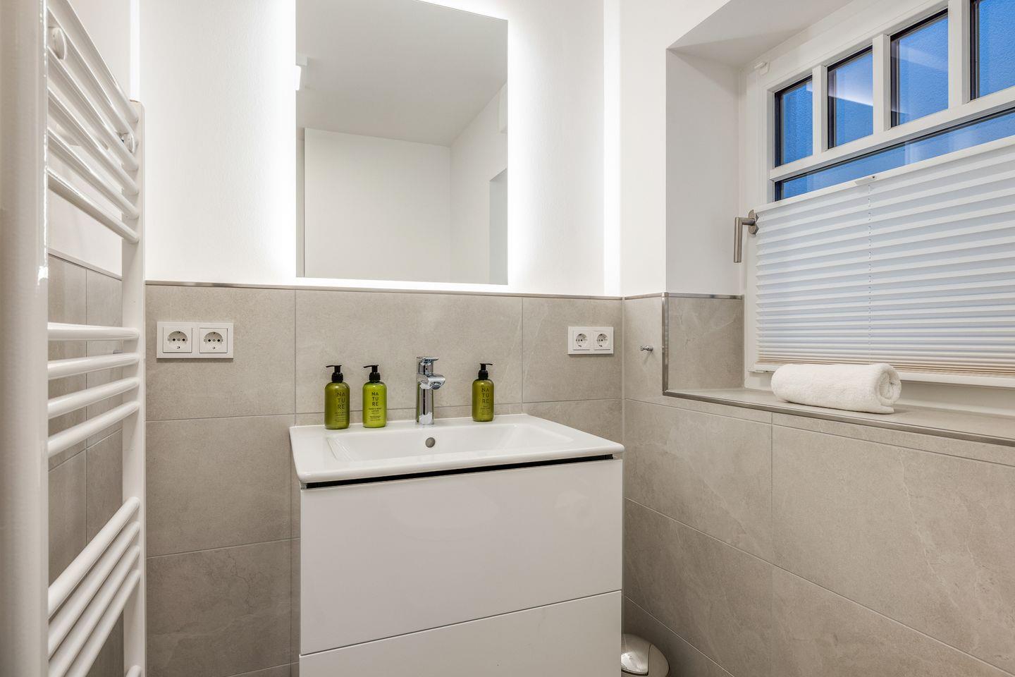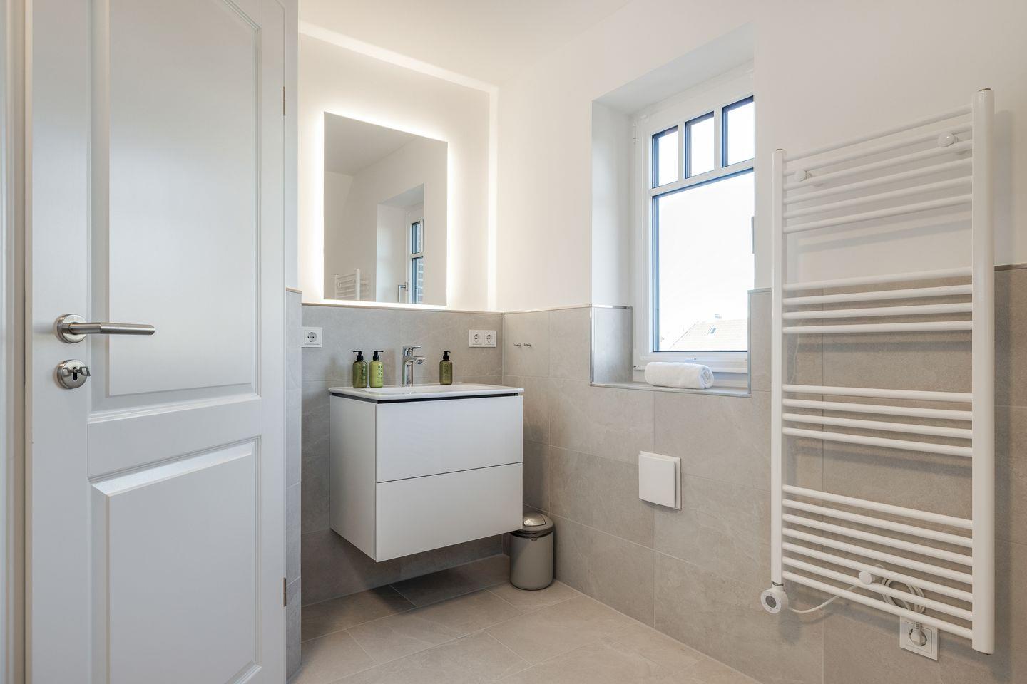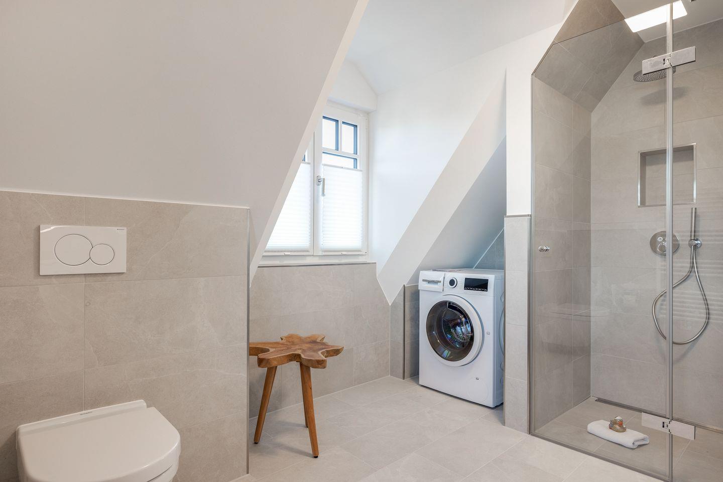Zwei Badezimmer sorgen für einen entspannten Tagesablauf: Beide sind jeweils mit Dusche, Waschbecken, Spiegel, Haartrockner, Handtüchern sowie Badausstattung (wie Seife, Shampoo etc.) ausgestattet. Zusätzlich steht Ihnen ein Gäste-WC zur Verfügung.