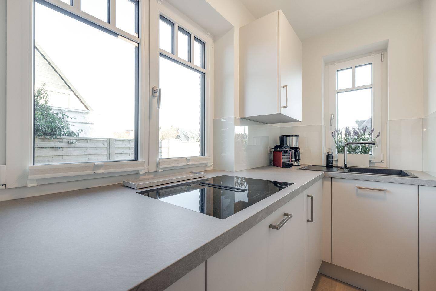 Die offene Einbauküche ist modern und umfassend ausgestattet. Sie verfügt über einen Induktionsherd, einen Backofen, eine Mikrowelle, einen Kühlschrank sowie eine Nespresso-Espressomaschine, eine Kaffeemaschine, einen Wasserkocher, einen Toaster und eine Spülmaschine. Geschirr, Besteck, Küchenutensilien und Geschirrhandtücher stehen Ihnen selbstverständlich zur Verfügung. Im angrenzenden Essbereich genießen Sie gemeinsam Ihre Mahlzeiten am Esstisch.