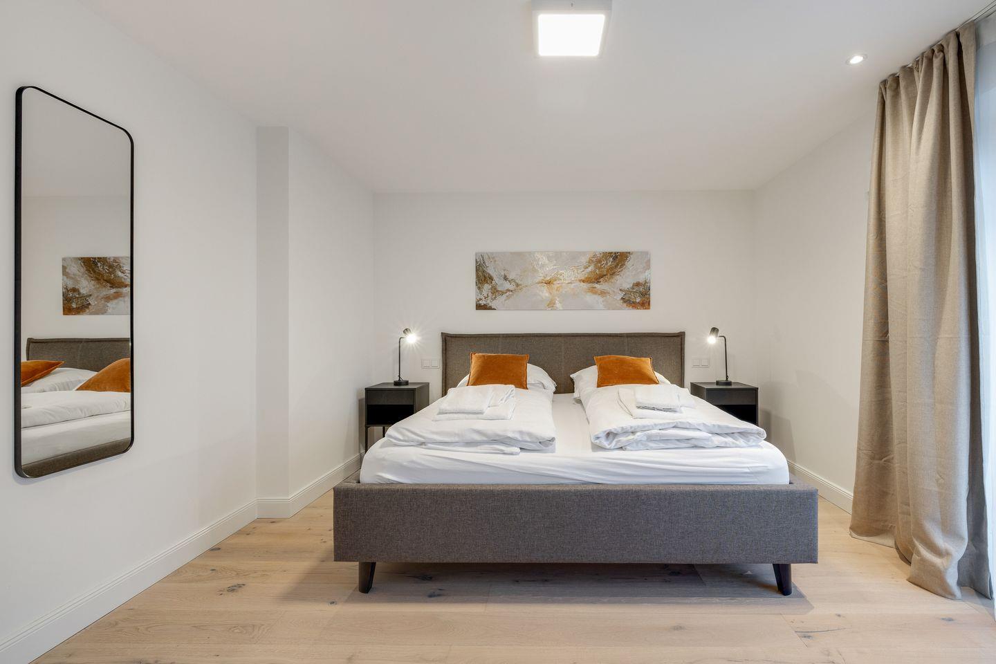 Die Unterkunft erstreckt sich über vier Etagen, wobei Sie sich im Parterre (Erdgeschoss) befinden. Insgesamt stehen Ihnen drei Zimmer zur Verfügung, darunter zwei komfortable Schlafzimmer, die zusammen mit der Couch Platz für bis zu vier Personen bieten. Alle Fenster der Wohnung sind mit Sichtschutz versehen, um Privatsphäre zu gewährleisten.