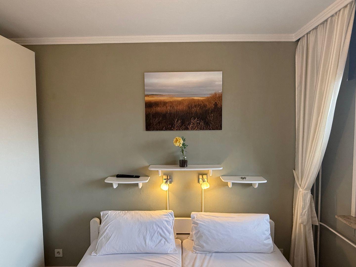 Ein Schlafzimmer mit einem angenehmen Ambiente garantiert erholsame Nächte. Hier stehen Betten mit frischer Bettwäsche bereit. Das Badezimmer wartet mit einer Dusche, einem WC und weiteren praktischen Elementen auf. Handtücher und Föhn sind ebenfalls vorhanden.