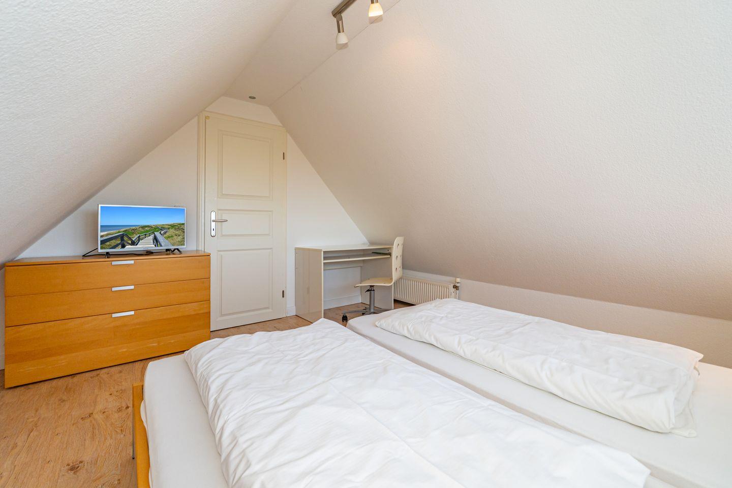 Die Ferienwohnung Conwind 5b im Haus Conwind in Keitum ist eine 78 m² große Ferienwohnung und verteilt sich auf zwei Ebenen (1. Stock und Dachgeschoss).