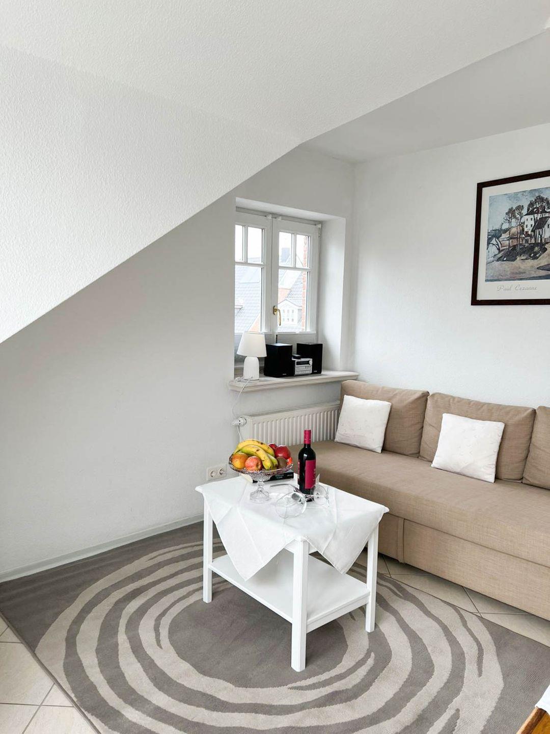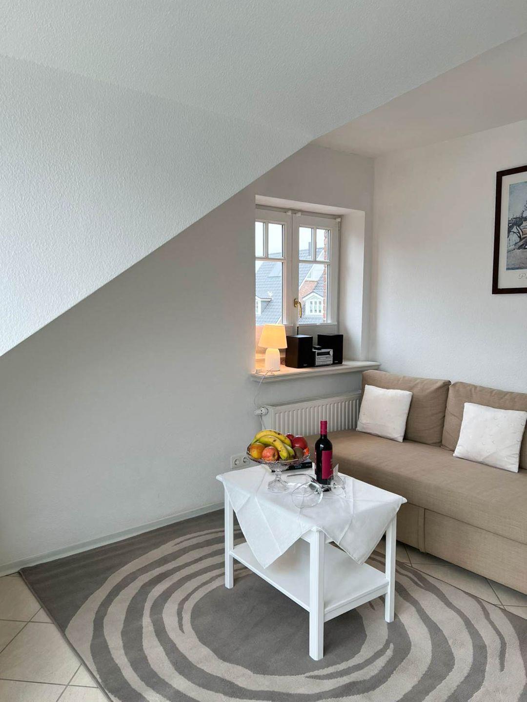 Gemütliche Ferienwohnung Leyla mit Balkon und Parkplatz in Westerland auf Sylt für einen entspannten Nordseeurlaub zu zweit.