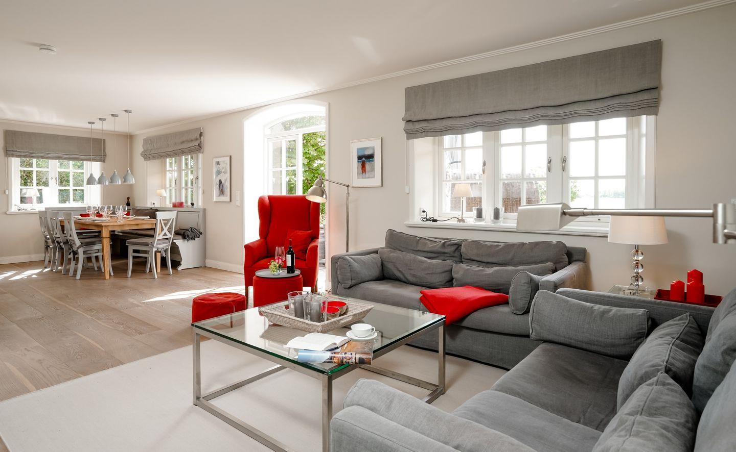Erleben Sie exklusiven Wohnkomfort in einer großzügigen Reedachhaushälfte mit Blick bis zum Deich auf Sylt.