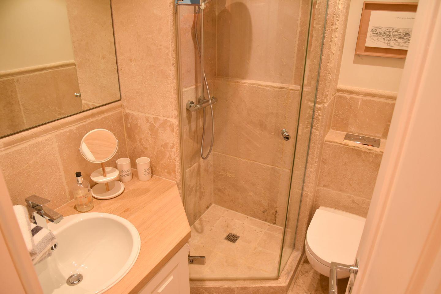 Das moderne Duschbad lädt zu erfrischenden Momenten ein, während der großzügige Doppelschlafraum Ihnen einen erholsamen Schlaf verspricht.