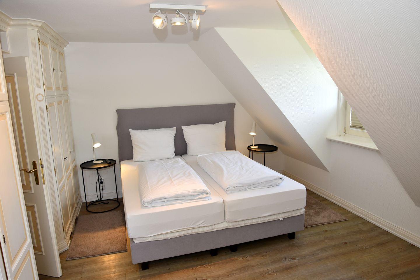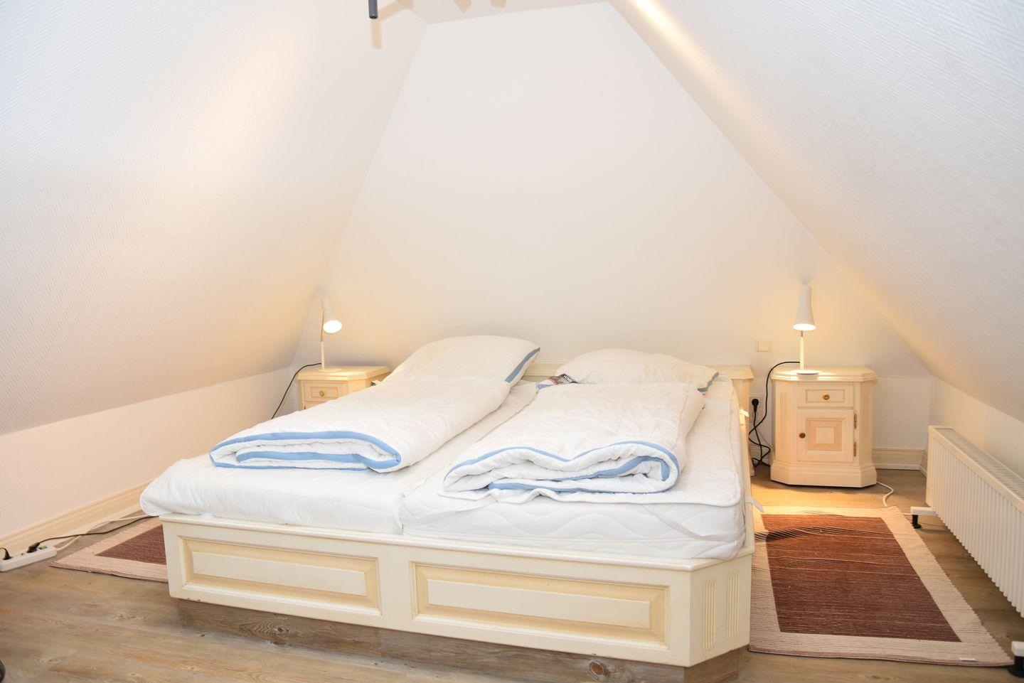 Im Obergeschoss erwartet Sie ein geräumiger Doppelschlafraum mit TV, ein großes Bad mit Regendusche und Sauna sowie ein weiteres Gäste-WC mit Waschmaschine. Ein zweiter Doppelschlafraum steht im offenen Dachgeschoss zur Verfügung. Ein reservierter Stellplatz befindet sich direkt am Haus. Das Meer, die Promenade, Einkaufsmöglichkeiten und der Golfplatz sind in wenigen Minuten erreichbar. Erleben Sie pure Entspannung und Komfort in diesem reetgedeckten Ferienhaus!