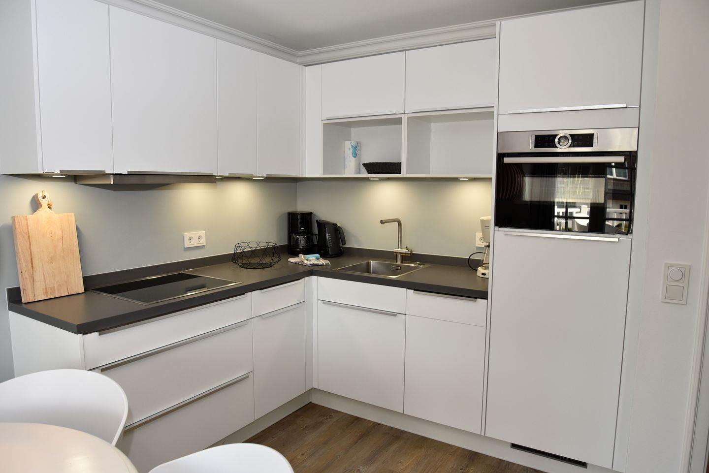 Die hochwertige Einrichtung sorgt dafür, dass Ihr Urlaub vom ersten Tag an ein Genuss wird. Die elegante Landhausküche, komplett ausgestattet mit Backofen und Geschirrspüler, lädt dazu ein, kulinarische Köstlichkeiten zu zaubern.