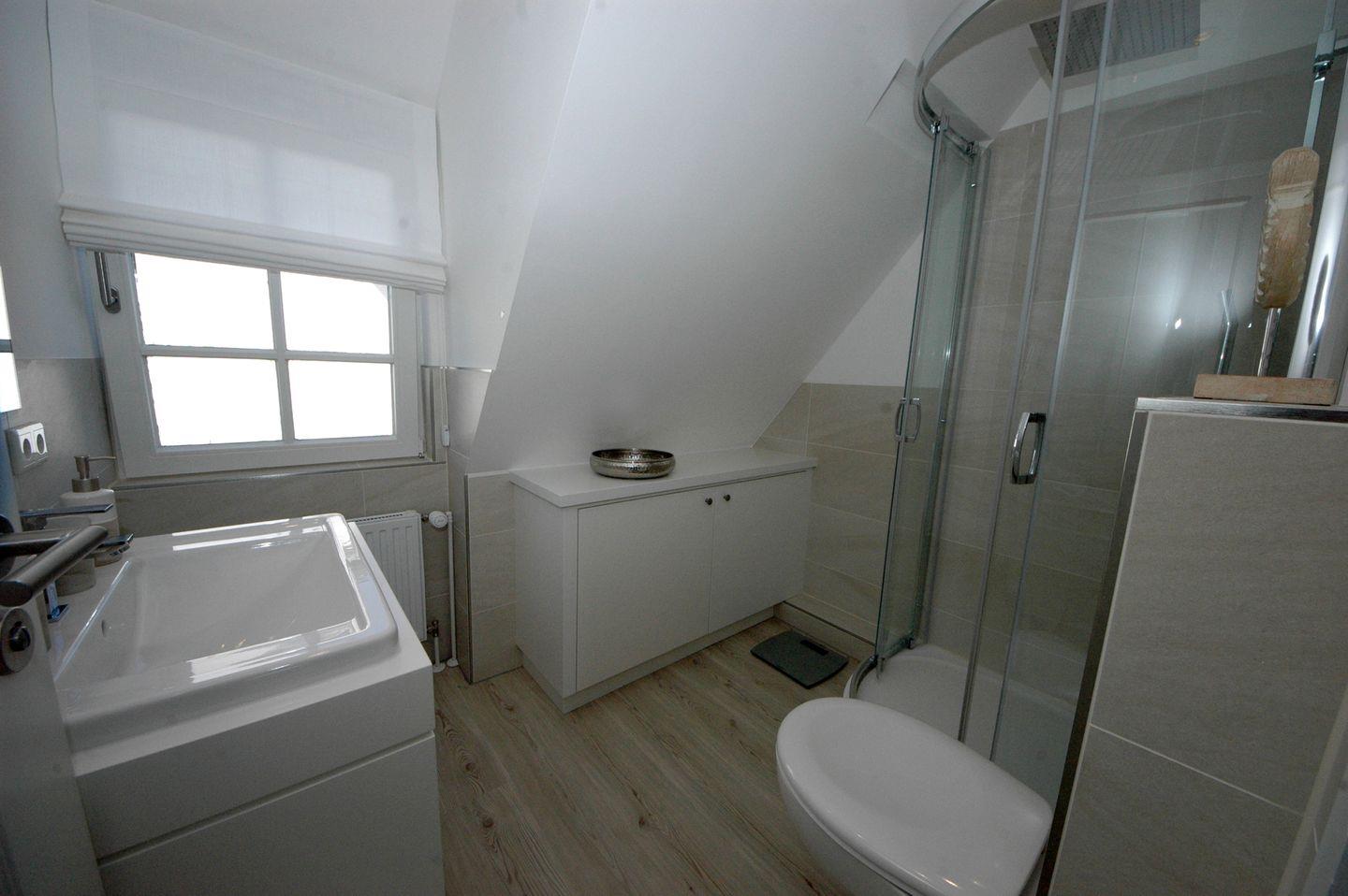 Das Obergeschoss begrüßt Sie mit einem großzügigen, lichtdurchfluteten Wohn-/Essbereich, der eine voll ausgestattete Küchenzeile beherbergt. Von hier aus haben Sie Zugang zu einem sonnigen Südbalkon, auf dem Sie die frische Nordseeluft in vollen Zügen genießen können. Ein modernes Duschbad vervollständigt diesen Bereich.