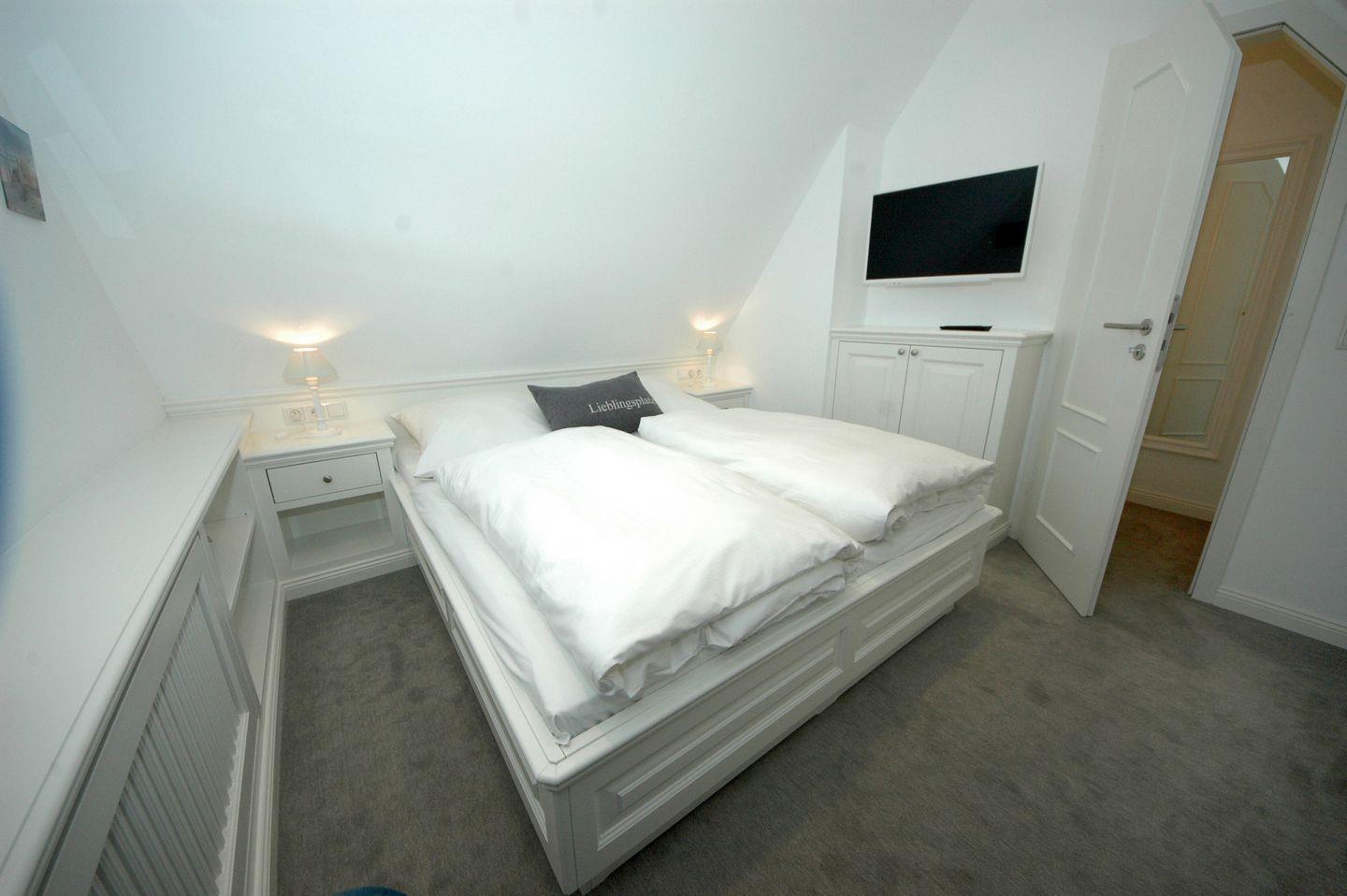 Im Dachgeschoss erwartet Sie ein behaglicher Schlafraum mit einem einladenden Doppelbett und ausreichend Stauraum für Ihre Kleidung Ihre persönlichen Gegenstände.