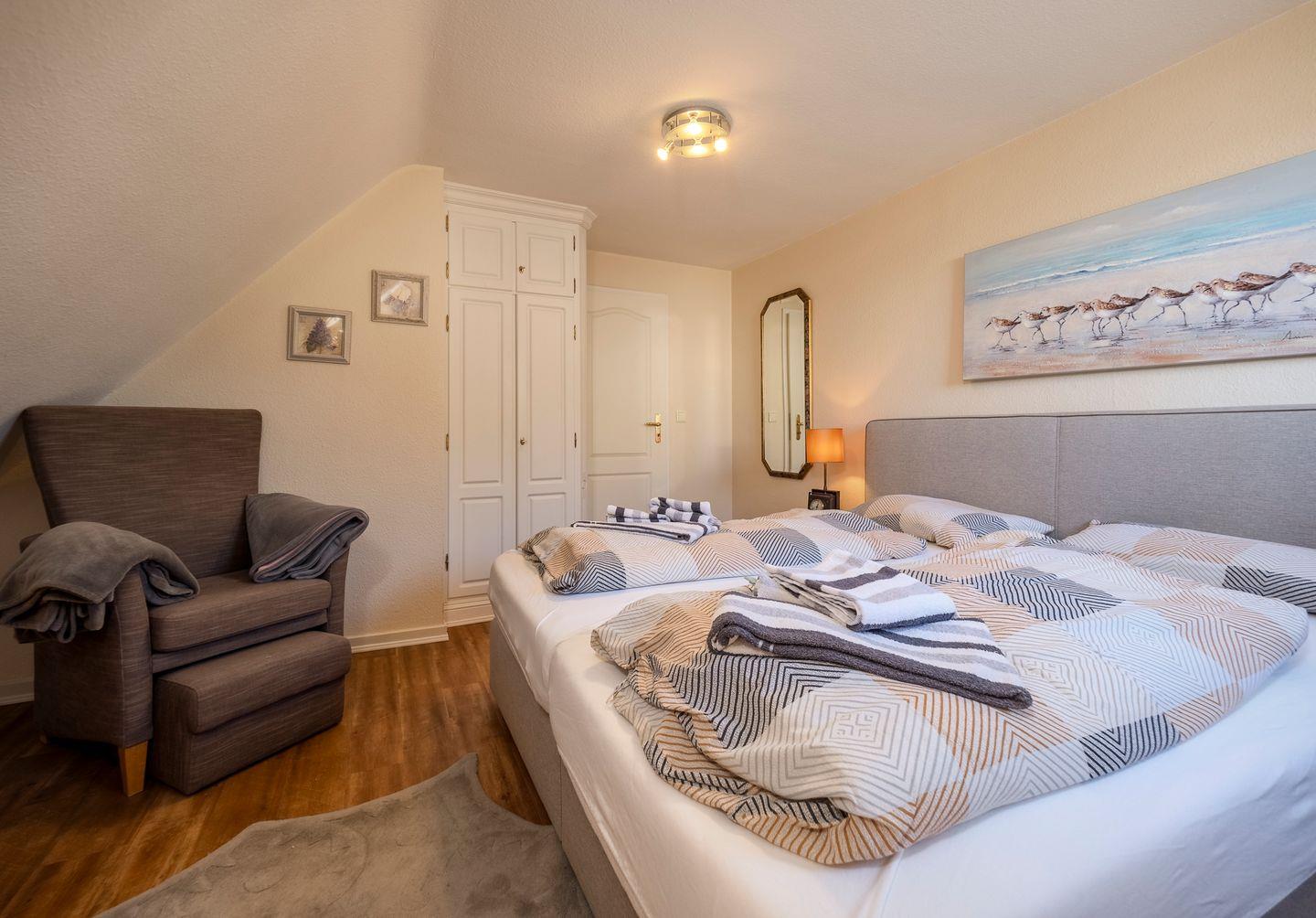 Willkommen in diesem stilvollen Appartement, das Sie zu erholsamen Urlaubstagen einlädt. Der 8 qm große Südbalkon mit Gartenmöbeln sowie die großzügige Wohnfläche von 85 qm auf zwei Ebenen mit einem geräumigen Bad lassen keine Wünsche offen.