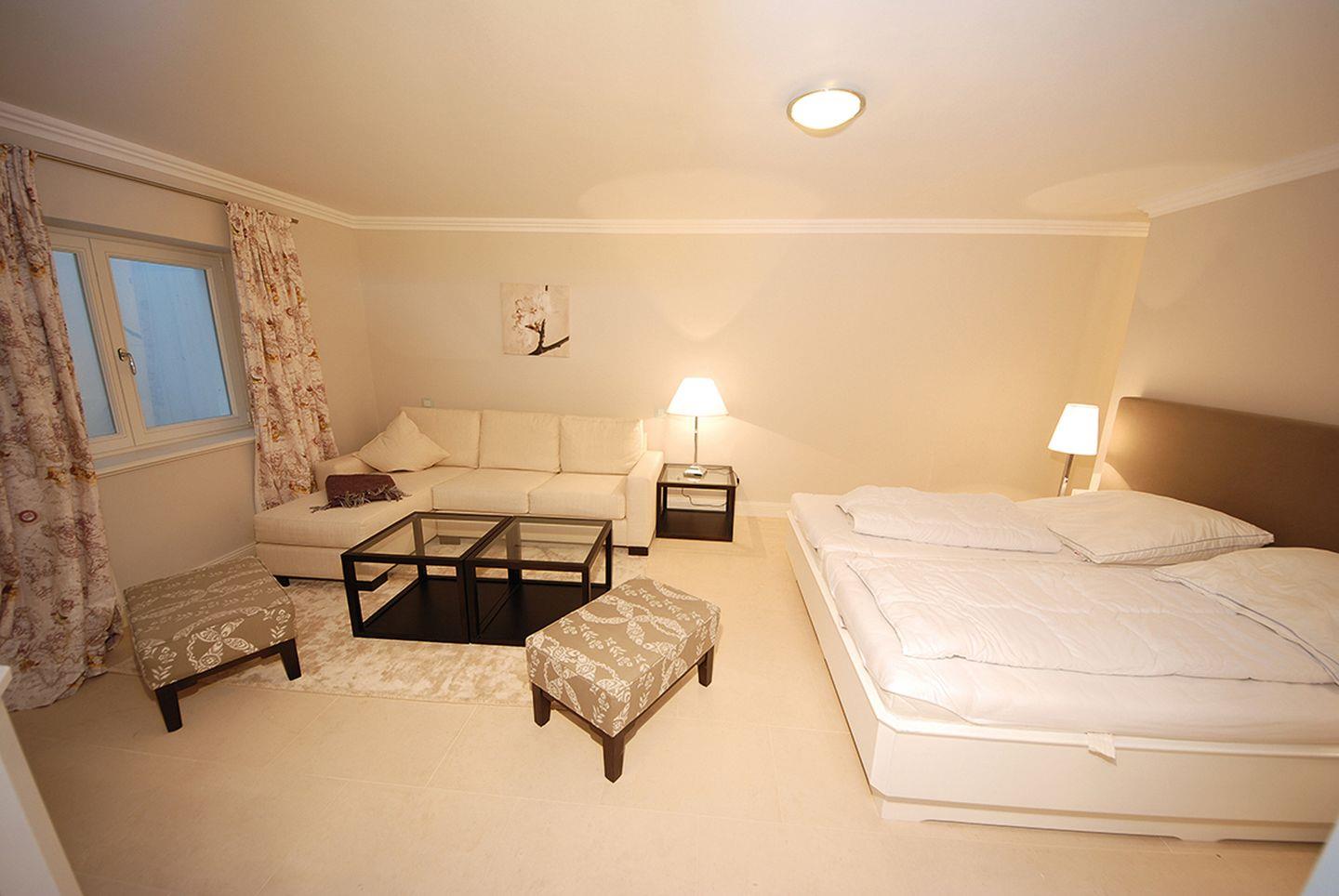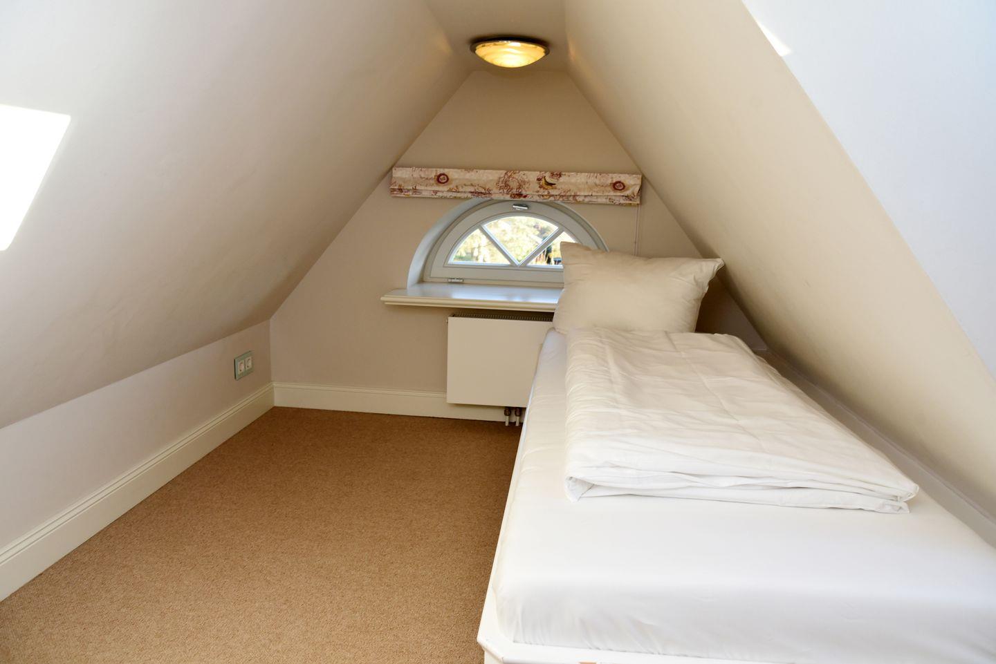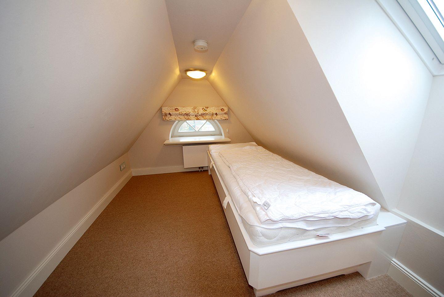 Im Untergeschoss befinden sich ein großzügiger Doppelschlafraum mit Ankleide, ein Einzelschlafraum sowie ein Badezimmer mit Dusche und Badewanne. Der Hauswirtschaftsraum mit Waschmaschine und Trockner komplettiert diese Etage, um Ihren Aufenthalt noch komfortabler zu gestalten. Das Obergeschoss beherbergt einen weiteren Doppelschlafraum mit Balkon und ein Duschbad. Unter dem Dach steht ein weiteres Einzelbett für Sie bereit.