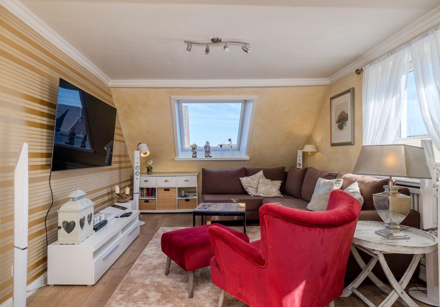 Herzlich willkommen in diesem stilvollen Appartement in Wenningstedt, das Platz für bis zu 3 Personen bietet und förmlich zu einem erholsamen Urlaub auf Sylt einlädt. Die großzügige 85 qm Wohnung erstreckt sich über zwei Ebenen und beeindruckt mit einem großem 8 qm Südbalkon, ausgestattet mit Gartenmöbeln und einem Strandkorb.
