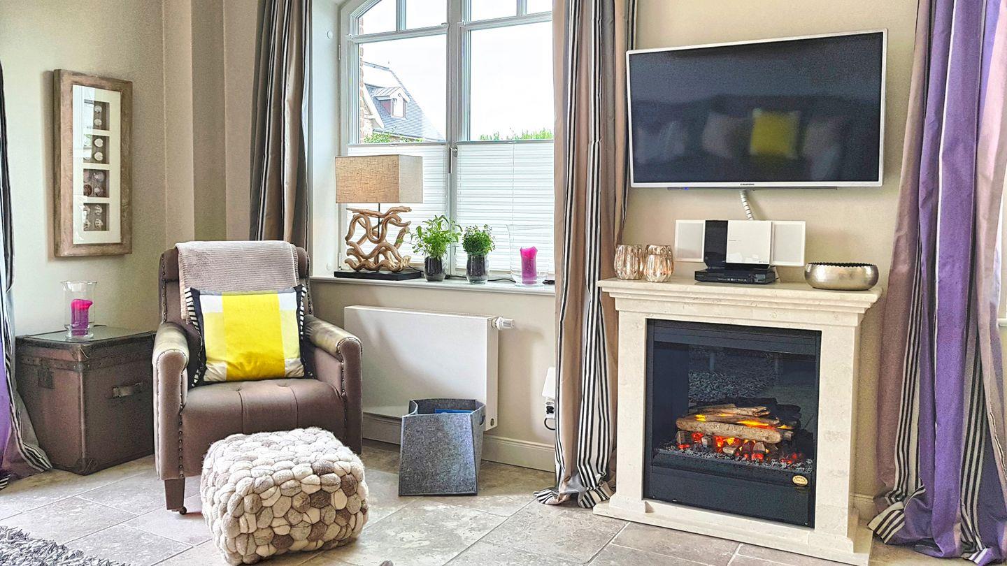Im Erdgeschoss erwartet Sie ein Wohn-Esszimmerbereich mit edlem Marmorboden und einem 3D-Elektrokamin für ein perfektes Wohlgefühl. Im Souterrain befinden sich ein Doppelschlafraum und ein Schlafraum mit zwei getrennten Betten, beide mit hochwertigem Eichenboden und Boxspringbetten. Das stilvolle Bad ist mit Marmorboden, Fußbodenheizung und einer luxuriösen Regendusche ausgestattet. Ein eigener Parkplatz am Haus und die Nutzung von Waschmaschine/Trockner im Waschkeller runden die Annehmlichkeiten ab.