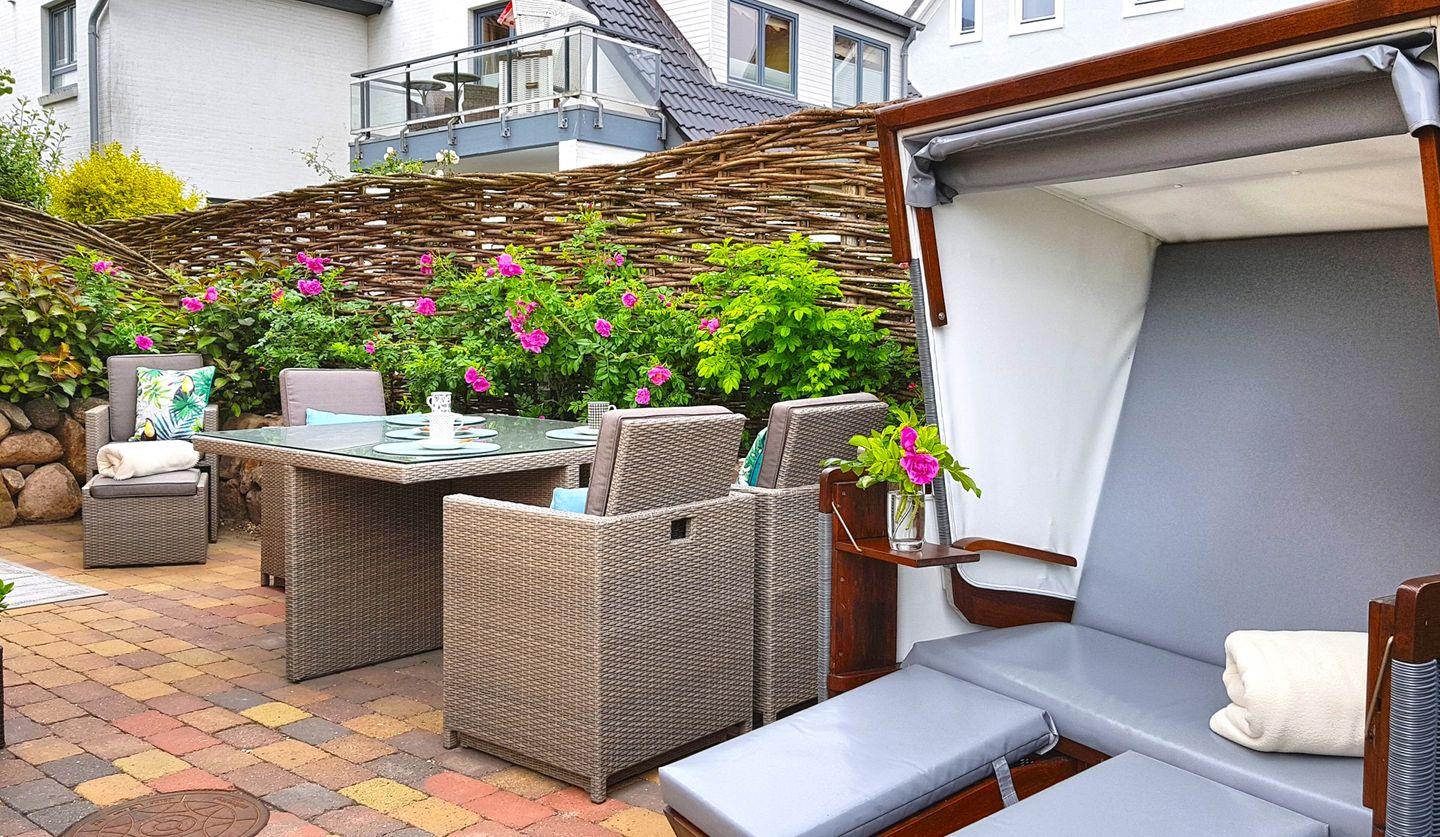 Luxuriöse Ferienwohnung Engel auf Sylt mit 80 qm, Garten, Terrasse und exklusiver Ausstattung für unvergesslichen Urlaub.