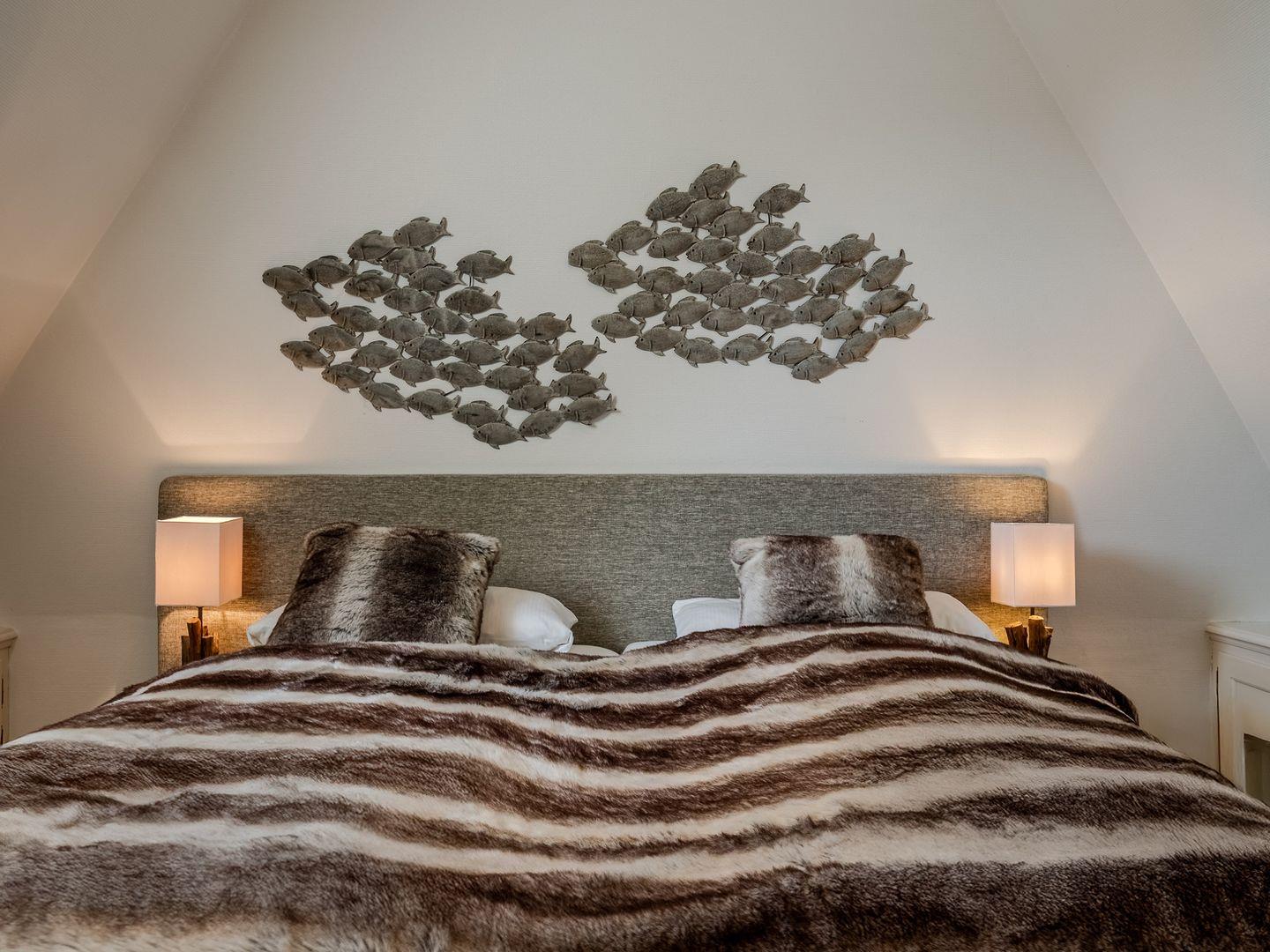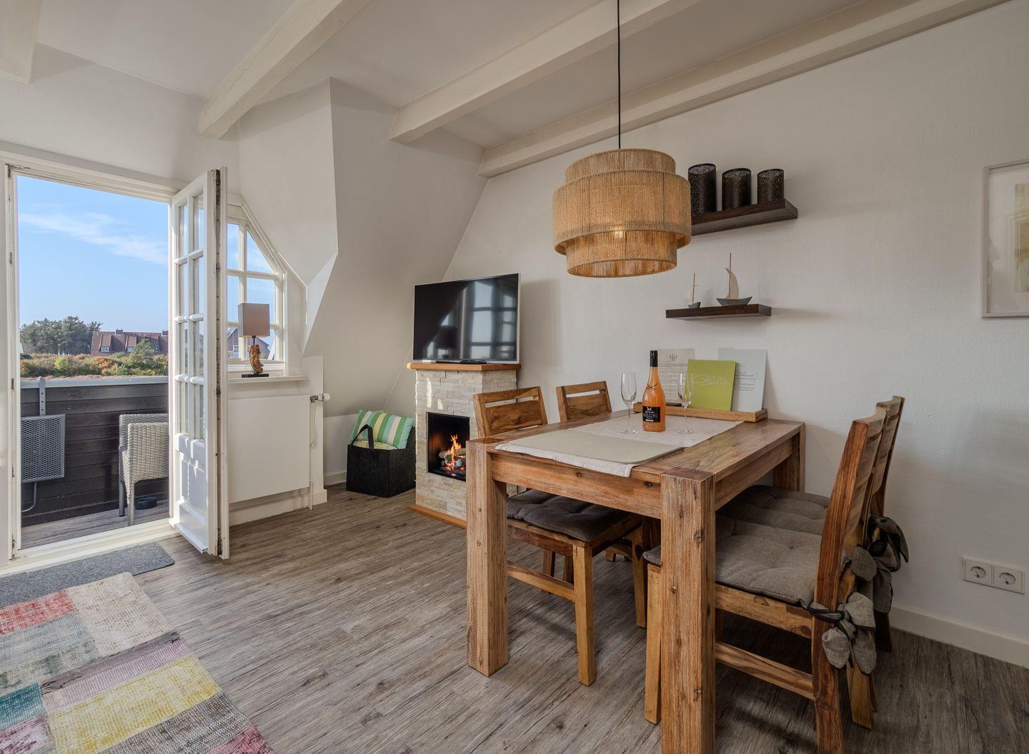 Das Dachgeschoss beherbergt ausreichend Schrankraum und eine praktische Abseite für Koffer hinter dem Ruhesessel. Ein eigener Parkplatz sowie eine abschließbare Box für Fahrräder, Kinderwagen und sandige Strandsachen stehen Ihnen zur Verfügung. Haustiere sind herzlich willkommen, um Ihren Aufenthalt noch gemütlicher zu gestalten.