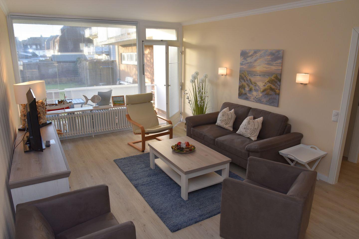 Herzlich willkommen in dieser exklusiven 3-Zimmer-Hochparterrewohnung, nur ca. 100 Meter vom Strand entfernt. Genießen Sie Ihren Urlaub in dieser traumhaften Unterkunft mit zwei großzügigen Westbalkonen, die alles bietet, was Sie für einen unvergesslichen Aufenthalt benötigen.
