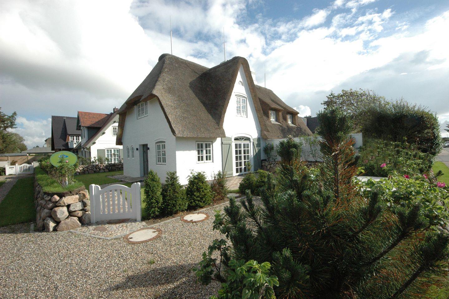 Luxuriöses Reetdach-Ferienhaus mit 113 m², Terrasse, Garten und Platz für 8 Personen in Wenningstedt auf Sylt.