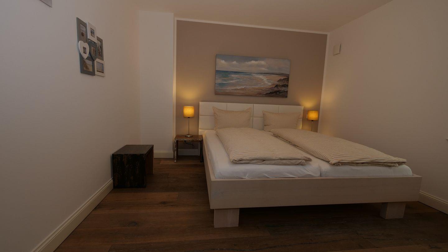 In den Schlafräumen finden Sie zunächst ein Schlafzimmer mit einem 220 cm langen Doppelbett, ein Schlafzimmer mit einem 160 cm breiten Doppelbett. Hierzu gehört ein Duschbad mit WC. Des Weiteren erwarten Sie zwei Schlafräume mit jeweils einem breitem Doppelbett und ein weiteres Duschbad mit WC, ausgestattet mit Waschmaschine mit integriertem Trockner für Ihren Komfort. Einen Hochstuhl sowie ein Kinderbett finden Sie im Keller des Hauses, ein Parkplatz direkt am Haus rundet das Angebot ab.