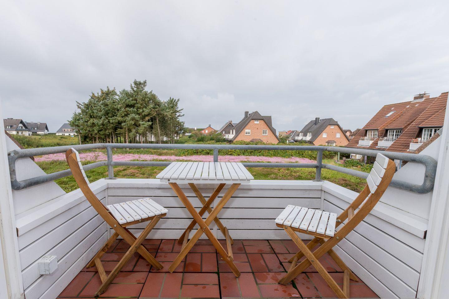 Entspannen Sie in der gemütlichen Ferienwohnung Arnika-Hof Nr.16 auf Sylt mit Balkon und Heideblick.