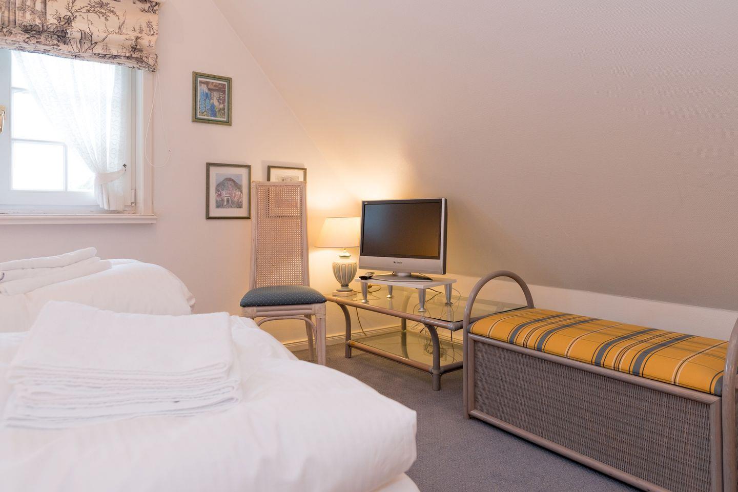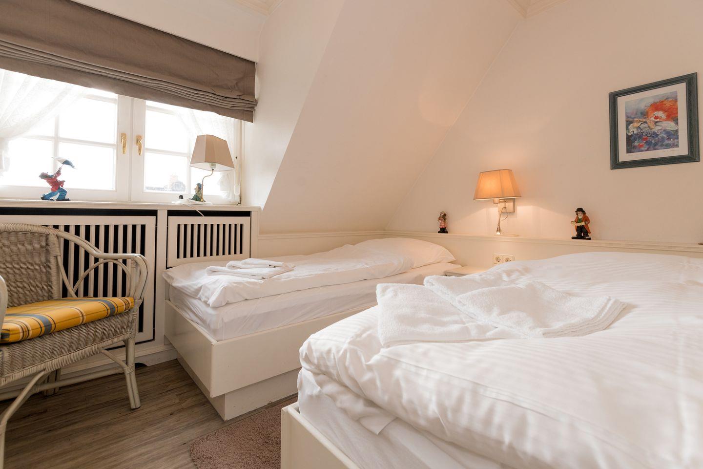 Diese entzückende Ferienwohnung erstreckt sich über großzügige 54 qm und bietet einen sonnigen Südwestbalkon. Im Obergeschoss erwartet Sie ein behaglicher Wohnraum mit einer voll ausgestatteten Küchenzeile und einer einladenden Essecke. Der separate Schlafraum verfügt über zwei Einzelbetten und ist mit einem modernen Dusch-/Badezimmer ausgestattet. Im Dachgeschoss eröffnet sich ein weiterer Schlafraum mit einem gemütlichen Doppelbett.