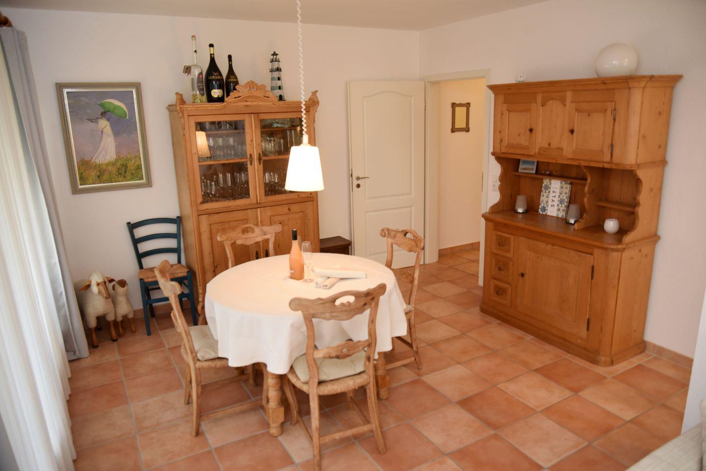 Das Appartement bietet alles auf einer Ebene und besticht durch seinen großzügigen Wohn-/Essbereich, der zum Entspannen und Verweilen einlädt. Die moderne Küchenzeile ist sehr gut ausgestattet und ermöglicht Ihnen die Zubereitung Ihrer Lieblingsgerichte. Von hier aus haben Sie Zugang zur Westterrasse, wo Sie die Sonne und frische Nordseeluft genießen können.