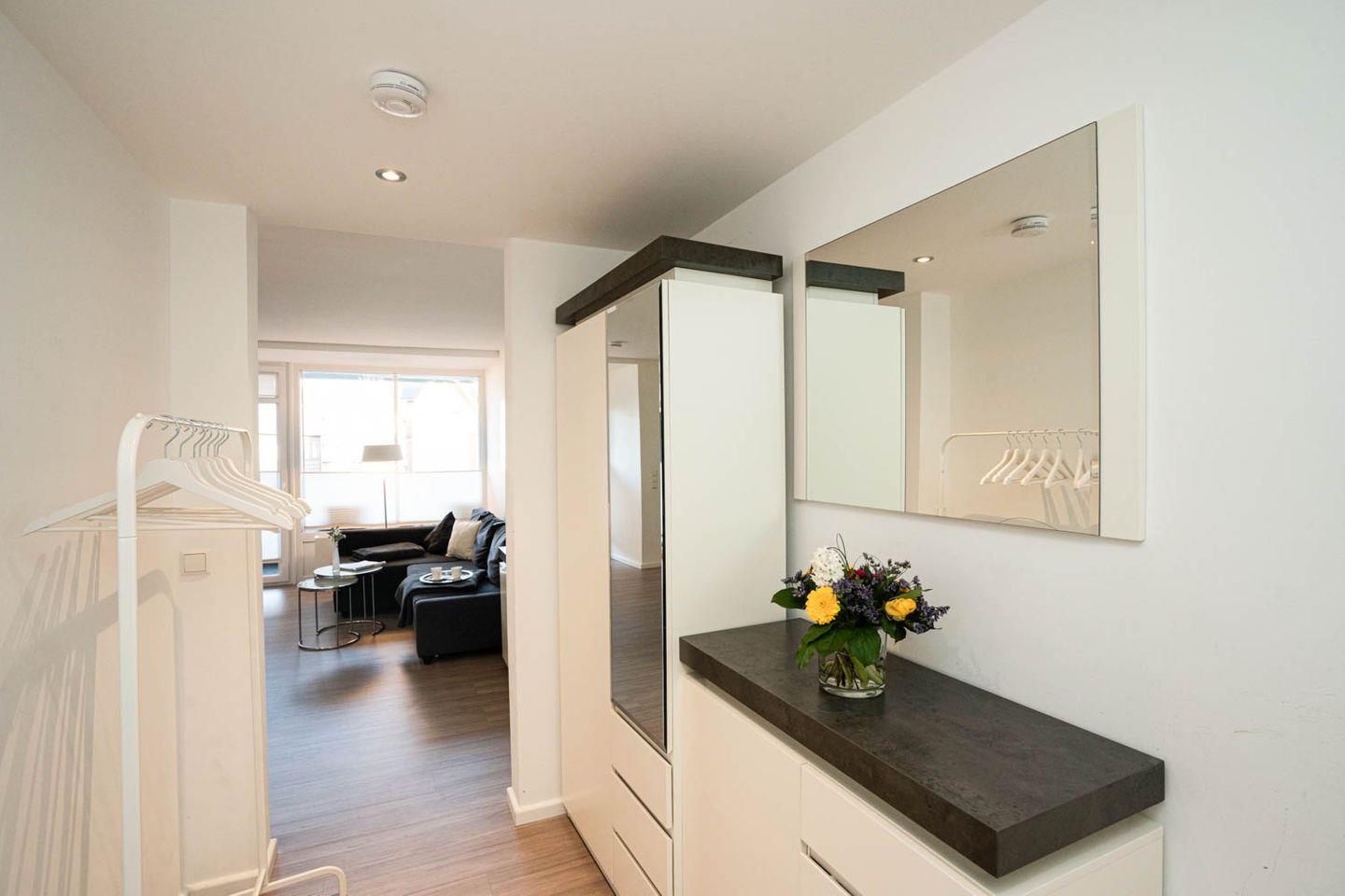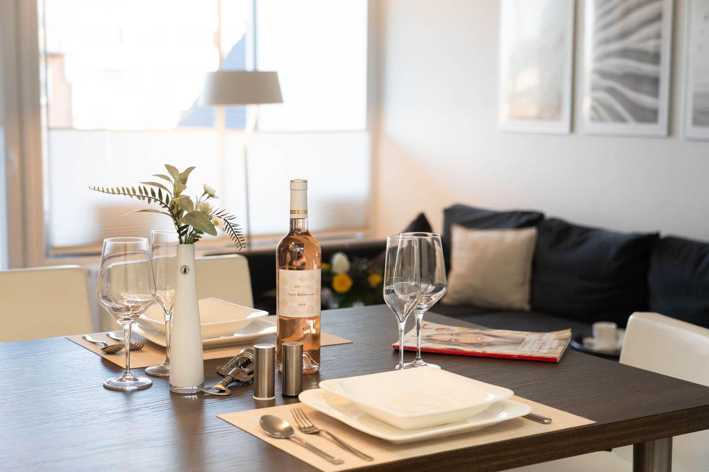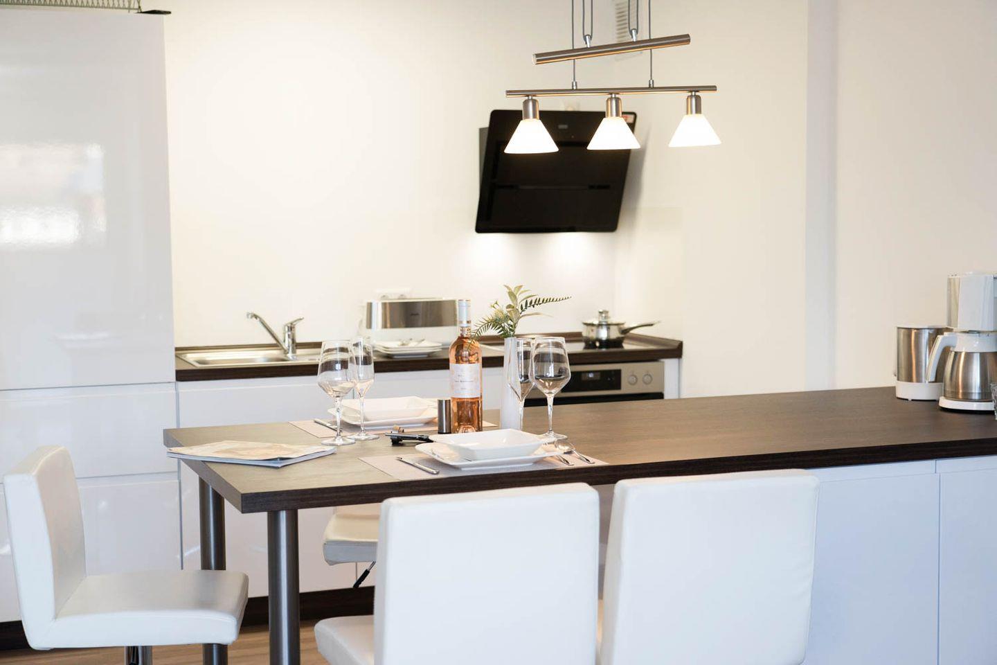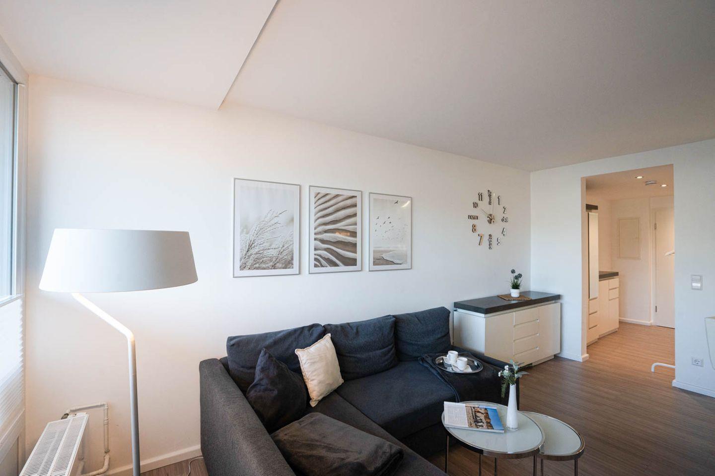 Die vor Kurzem renovierte und mit klarem, edlen Design eingerichtete 2-Zimmer-Wohnung in dieser Anlage ist perfekt für Zwei, verfügt über eine kleine, geschmackvolle offene Küche mit Tresen und coolen Barhockern, die in den Wohnbereich mit Eck-Couch übergeht. Ein Balkon macht dieses attraktive Angebot vom Kaliber „kleiner Geheimtipp“ komplett, das nur unterschätzt, wer nicht genauer hinschaut.