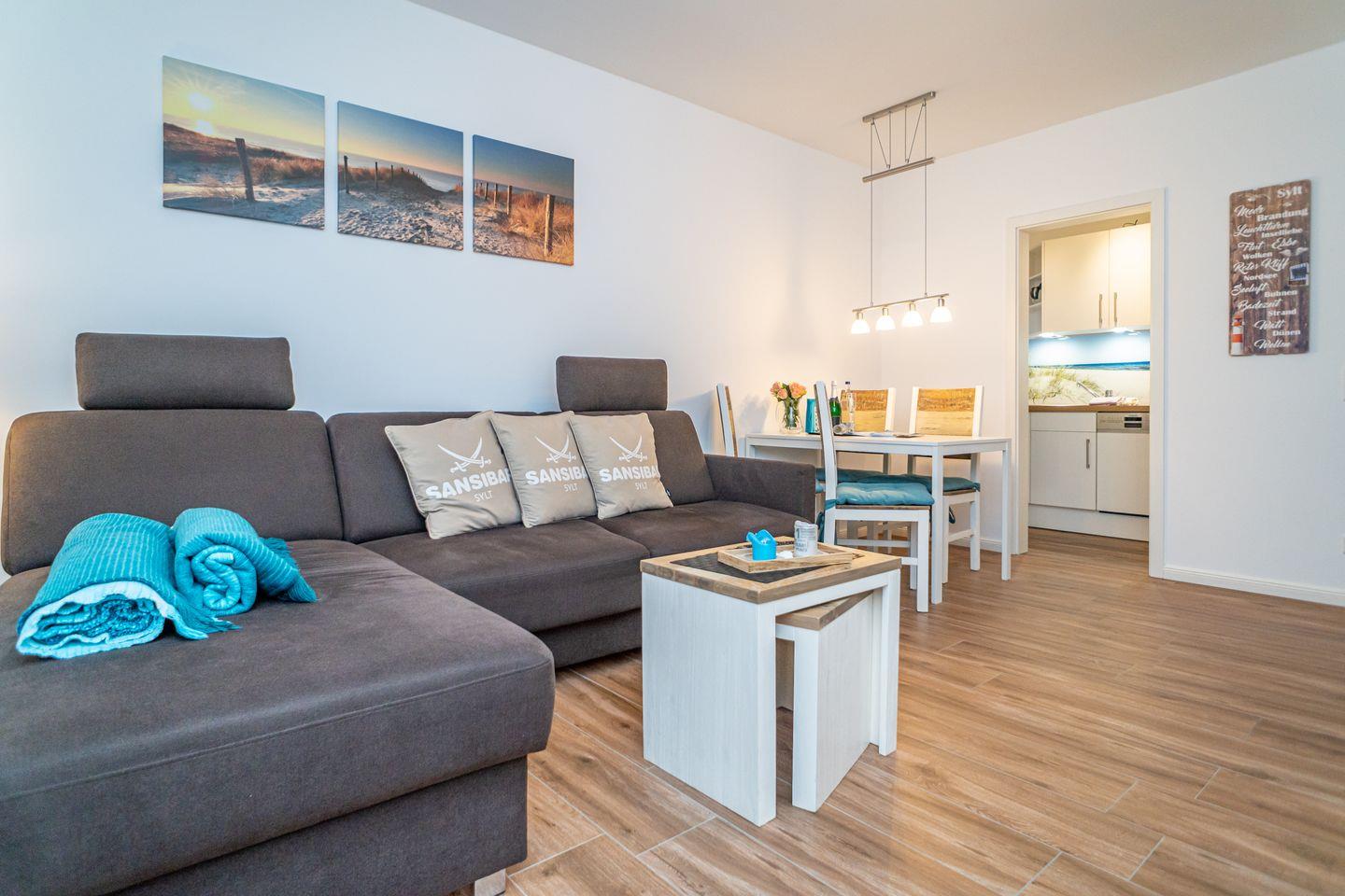 Moderne Ferienwohnung "Sylter Perle" in Westerland mit eigenem Strandkorb und Balkon, ideal für Familien.