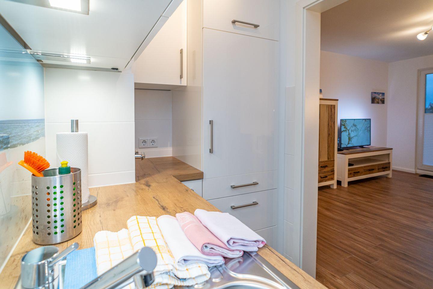 Meerblau, schickes Grau, strahlendes Weiß und maritime Holzelemente dominieren seit der vor Kurzem erfolgten Renovierung, und diese Perle bringt einiges mit, was sie besonders beliebt macht. Da wäre zunächst die wirklich praktische Ausstattung, zu der sogar eine Waschmaschine gehört, genauso wie ein Blu-Ray-Player und der Privatparkplatz. Dann ist die Lage in Alt-Westerland etwas für Kenner: Von hier aus ist die Innenstadt nur einen kleinen Fußweg entfernt und trotzdem geht es in der Gartenstraße eher ruhig zu. Und dann gehört auch noch ein Westbalkon dazu, der zu genüsslichen Sonnensitzungen am Nachmittag einlädt, vom guten Preis-Leistungsverhältnis ganz zu schweigen.