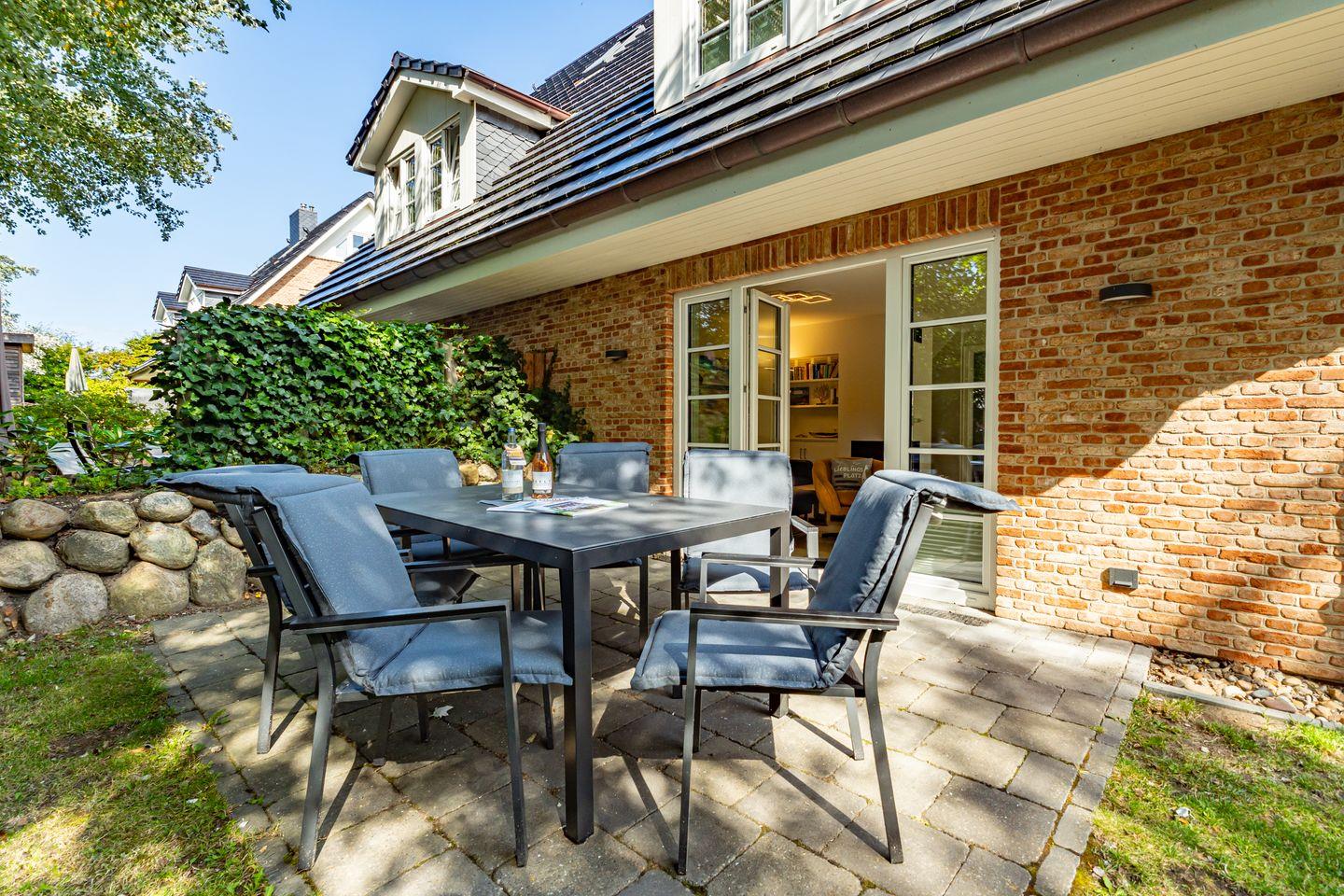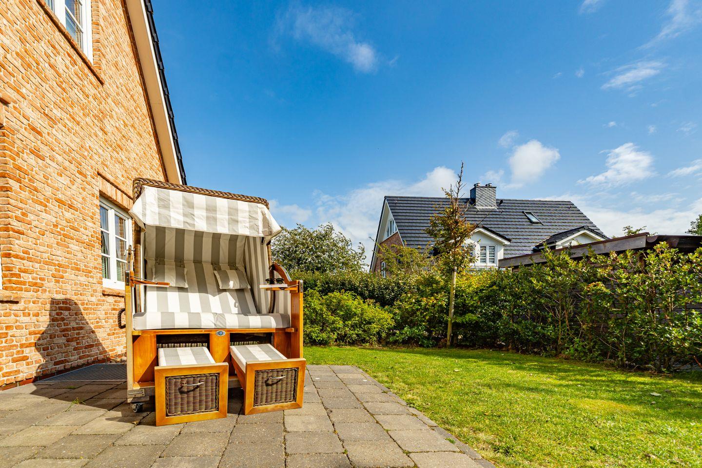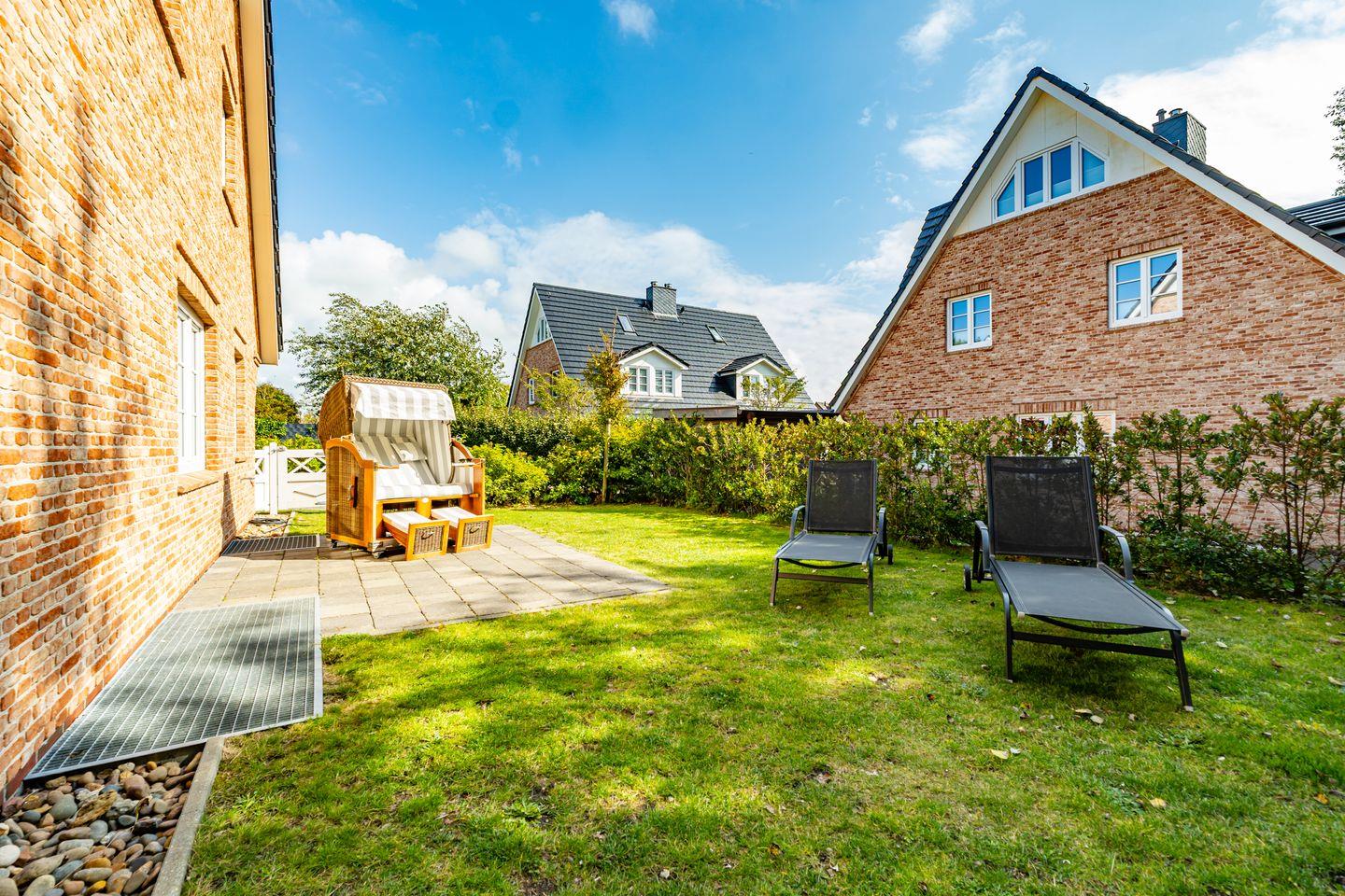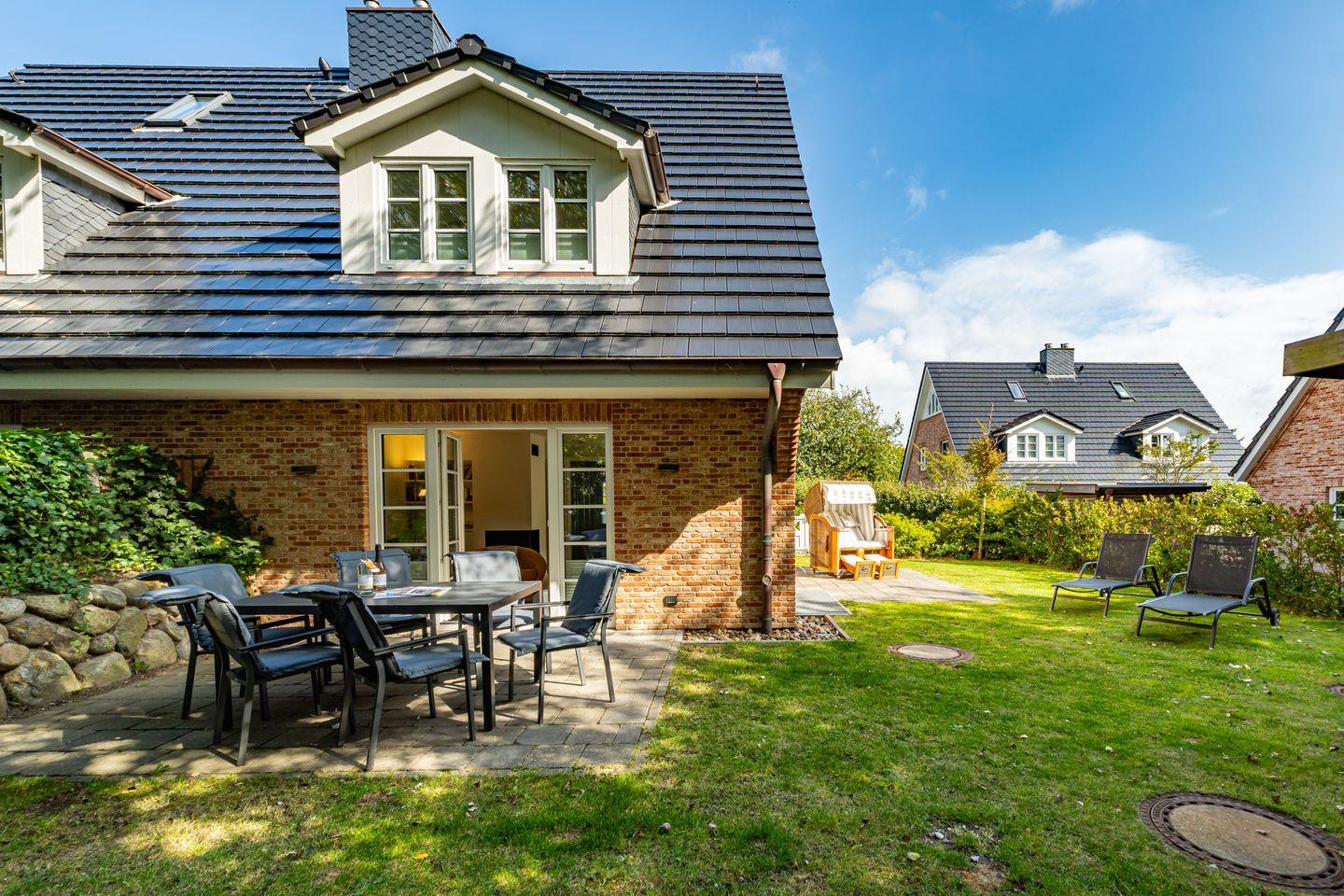 Gemütliche Doppel-Ferienhaushälfte auf Sylt mit Sauna, Kinoraum und Garten für erholsame Urlaubstage.