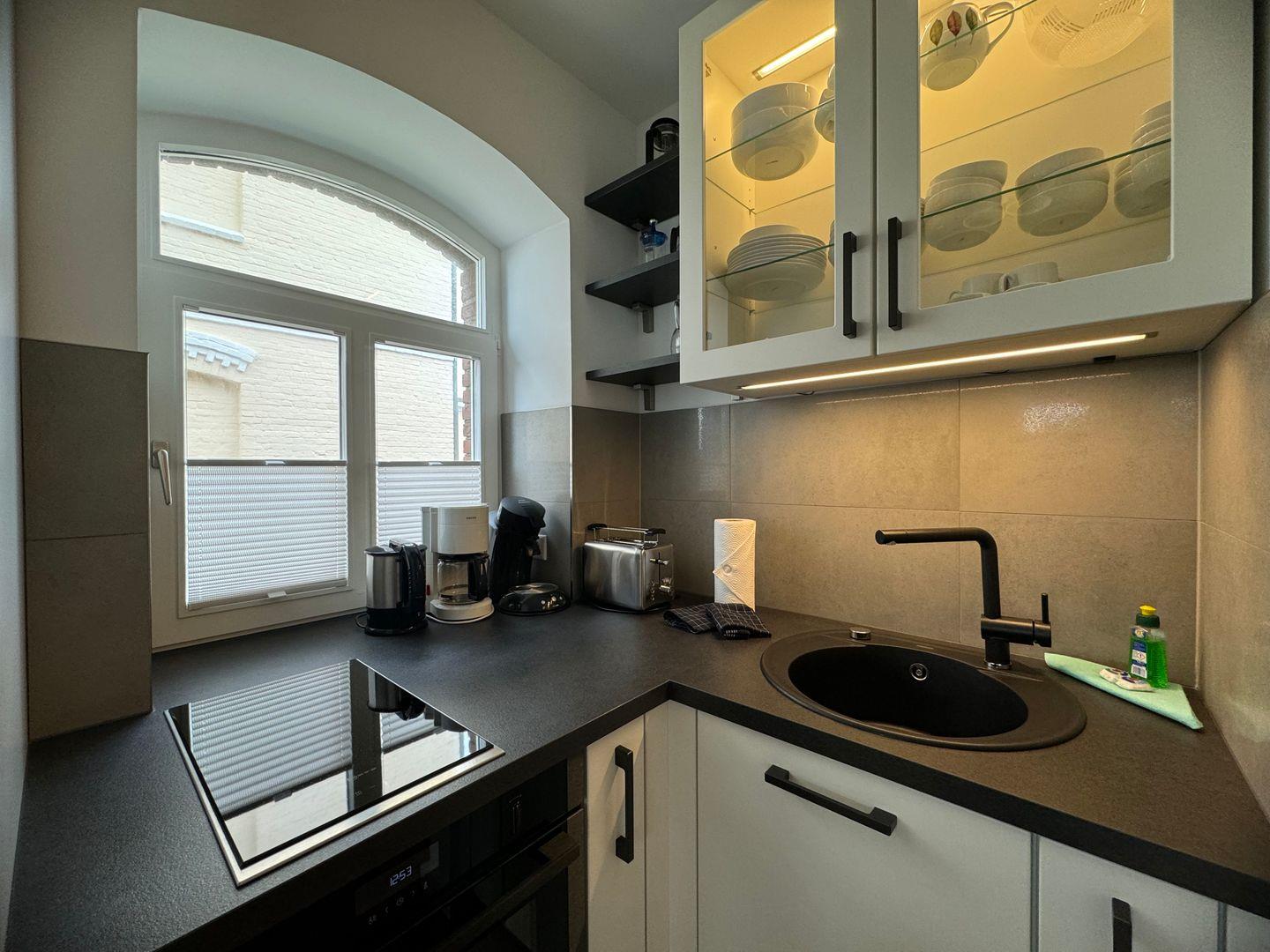 Die Küche ist voll ausgestattet und bietet alles, was Sie brauchen, um köstliche Mahlzeiten zuzubereiten. Mit einem Herd, Backofen, Kühlschrank und Geschirrspüler sind Sie bestens gerüstet, um lokale Spezialitäten zu kochen oder einen schnellen Snack zuzubereiten. Zudem finden Sie nützliche Küchenutensilien, eine Kaffeemaschine und einen Wasserkocher vor, um Ihren Aufenthalt so angenehm wie möglich zu gestalten.