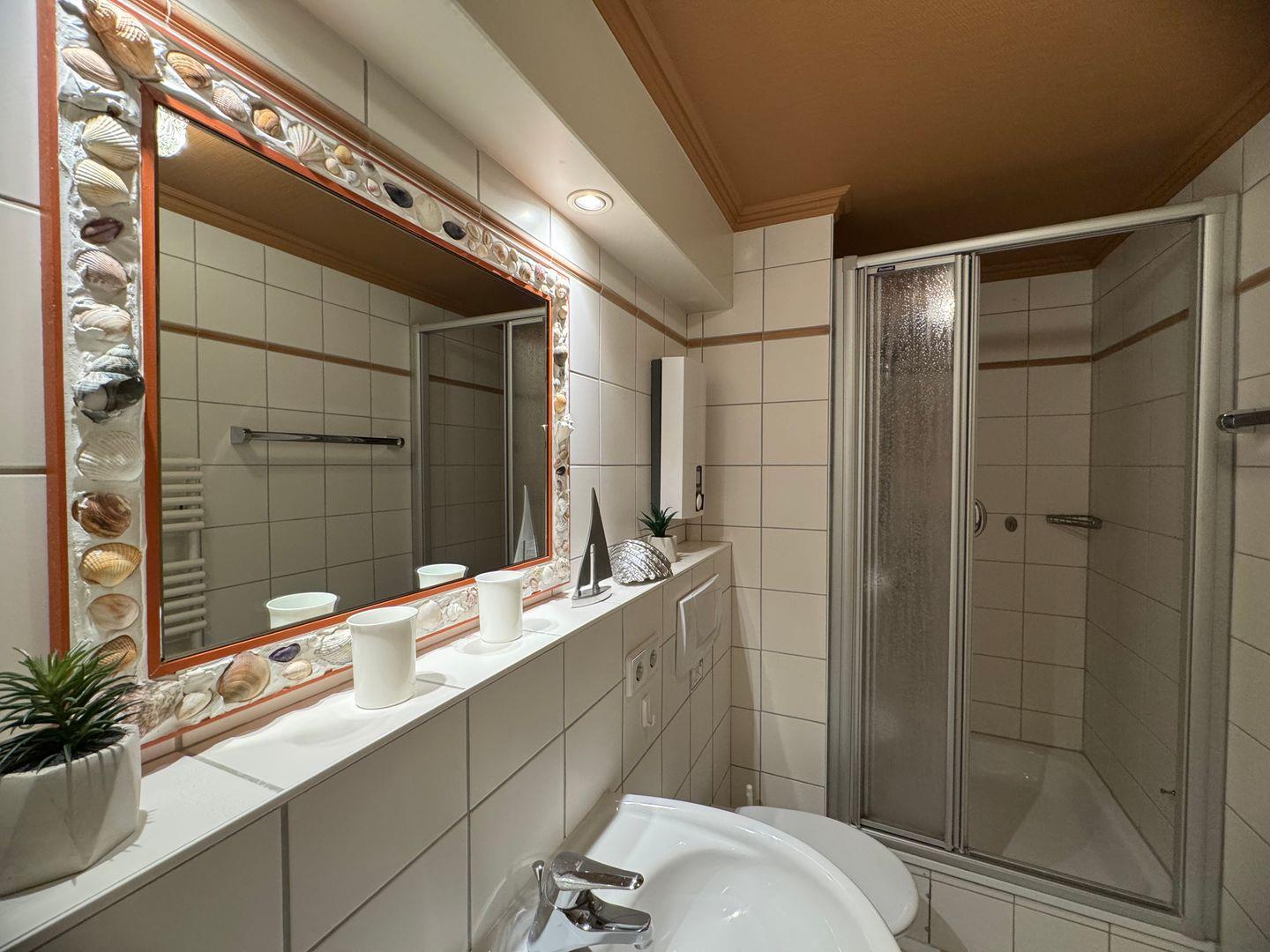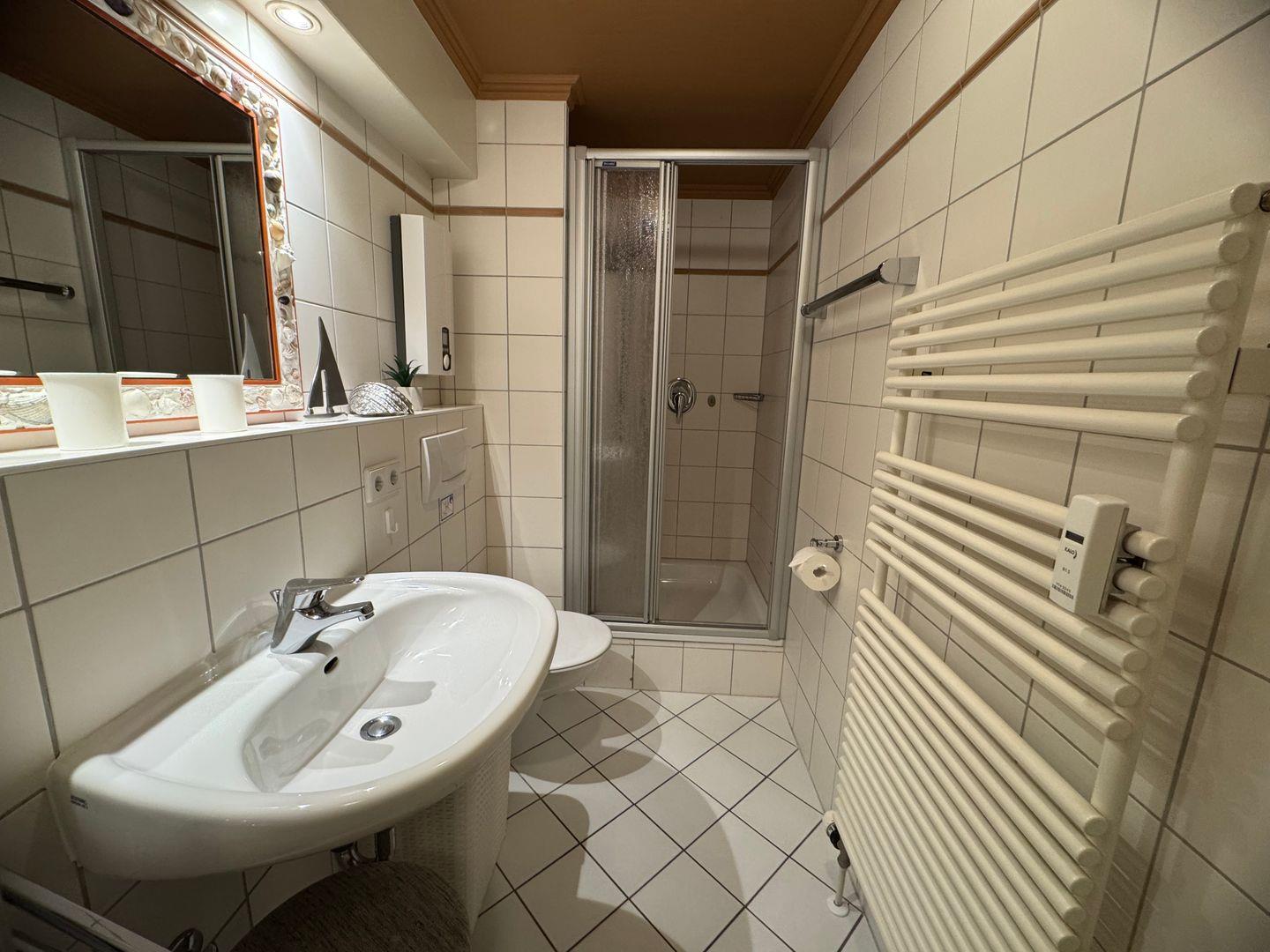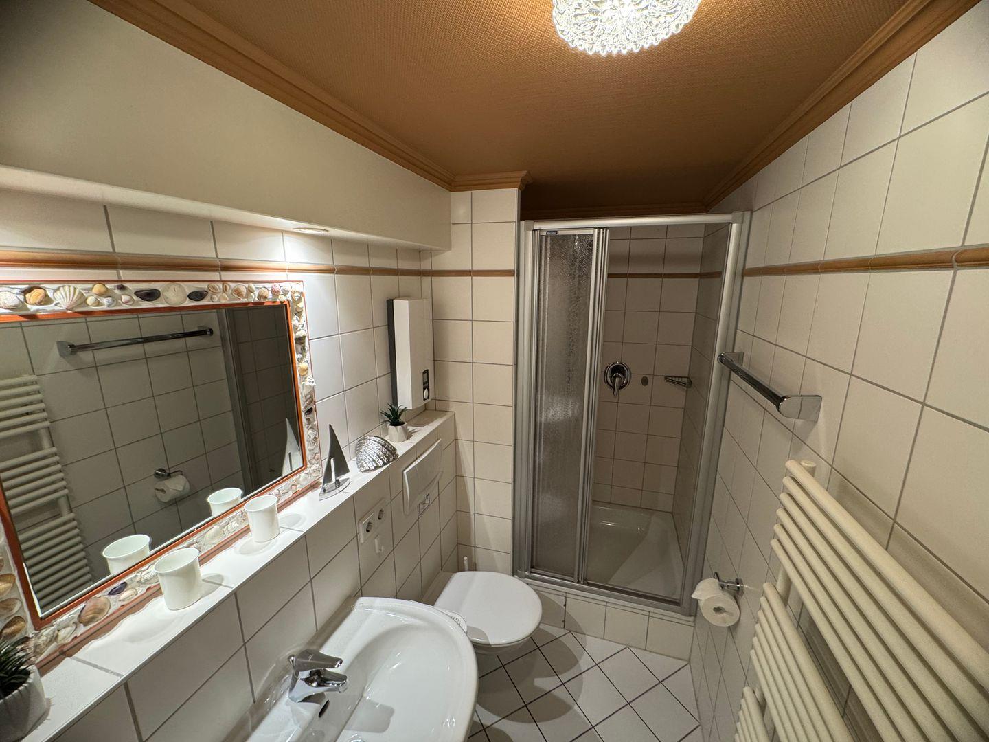 Das Badezimmer ist mit einer Dusche, einem WC und einem Haartrockner ausgestattet und bietet alles, was Sie für die persönliche Pflege benötigen. Genießen Sie den Komfort einer Zentralheizung in den kühleren Monaten sowie die Ruhe, die das Appartement als Nichtraucherunterkunft bietet.