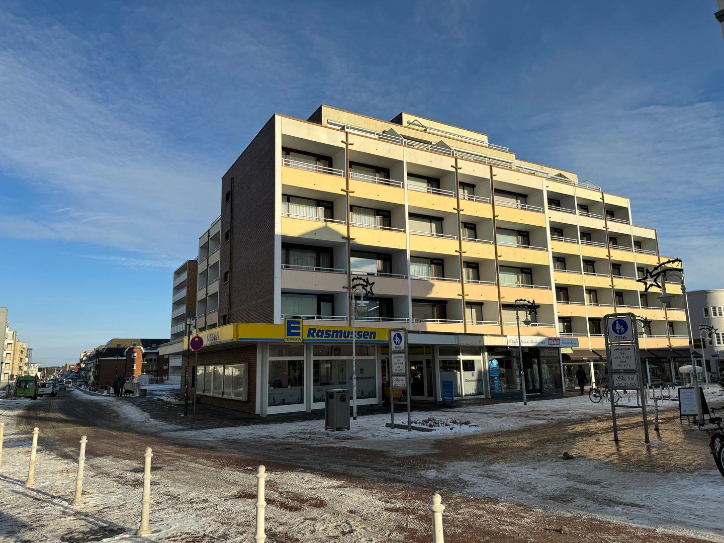 Das moderne 2-Zimmerappartement 51, befindet sich in der 3. Etage eines sehr gepflegtem Appartementhauses, mit Fahrstuhl. Es verfügt über einen Südbalkon mit eingeschränktem Meerblick sowie Polyrattan-Sessel und Außenrollläden.