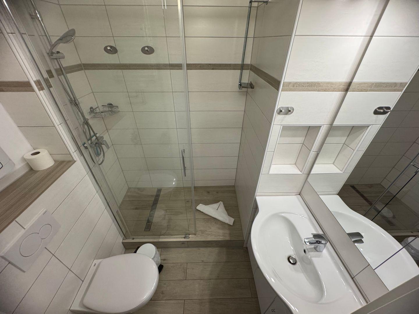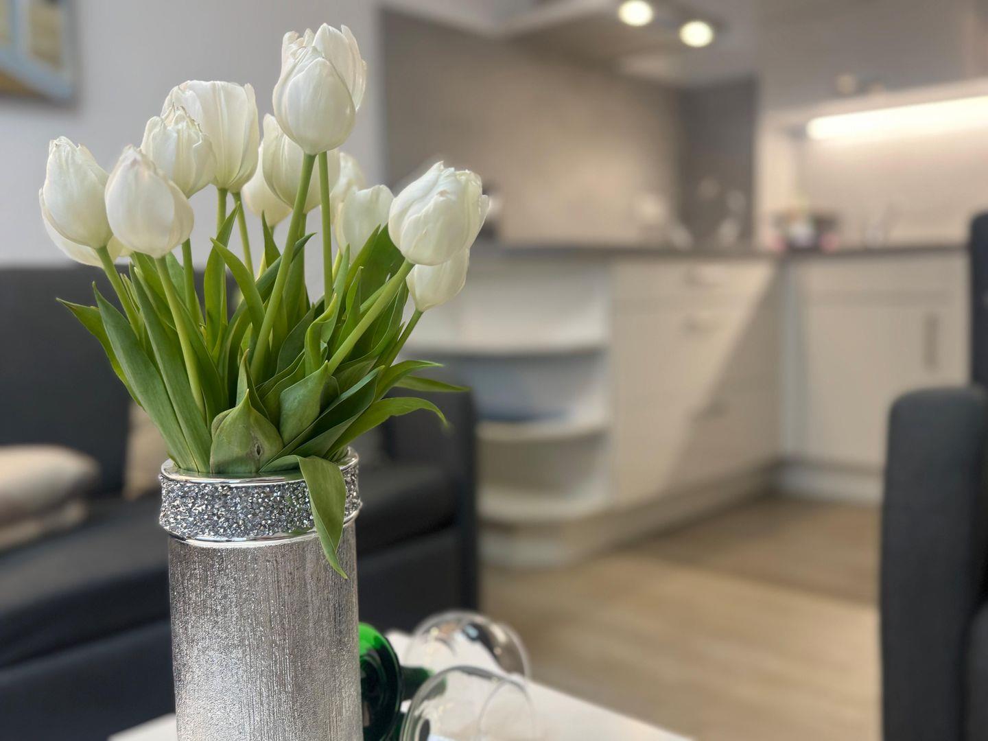 Ausstattung: Die Wohnung bietet ein helles Wohnzimmer mit einem gemütlichen Sofa, das zum Entspannen einlädt. Eine offene und gut ausgestattete Küche mit modernen Geräten wie einem Cerankochfeld, Backofen, Spülmaschine und Kühlschrank sorgt dafür, dass Sie selbst im Urlaub nicht auf Ihre Lieblingsmahlzeiten verzichten müssen. Der Esstisch bietet genügend Platz, um gemeinsam zu essen. Das Schlafzimmer mit Laminatboden ist mit einem komfortablen Bett ausgestattet, und das moderne Badezimmer überzeugt mit einer großen Dusche, WC und Waschbecken. Selbstverständlich stehen Ihnen frische Bettwäsche und Handtücher zur Verfügung.