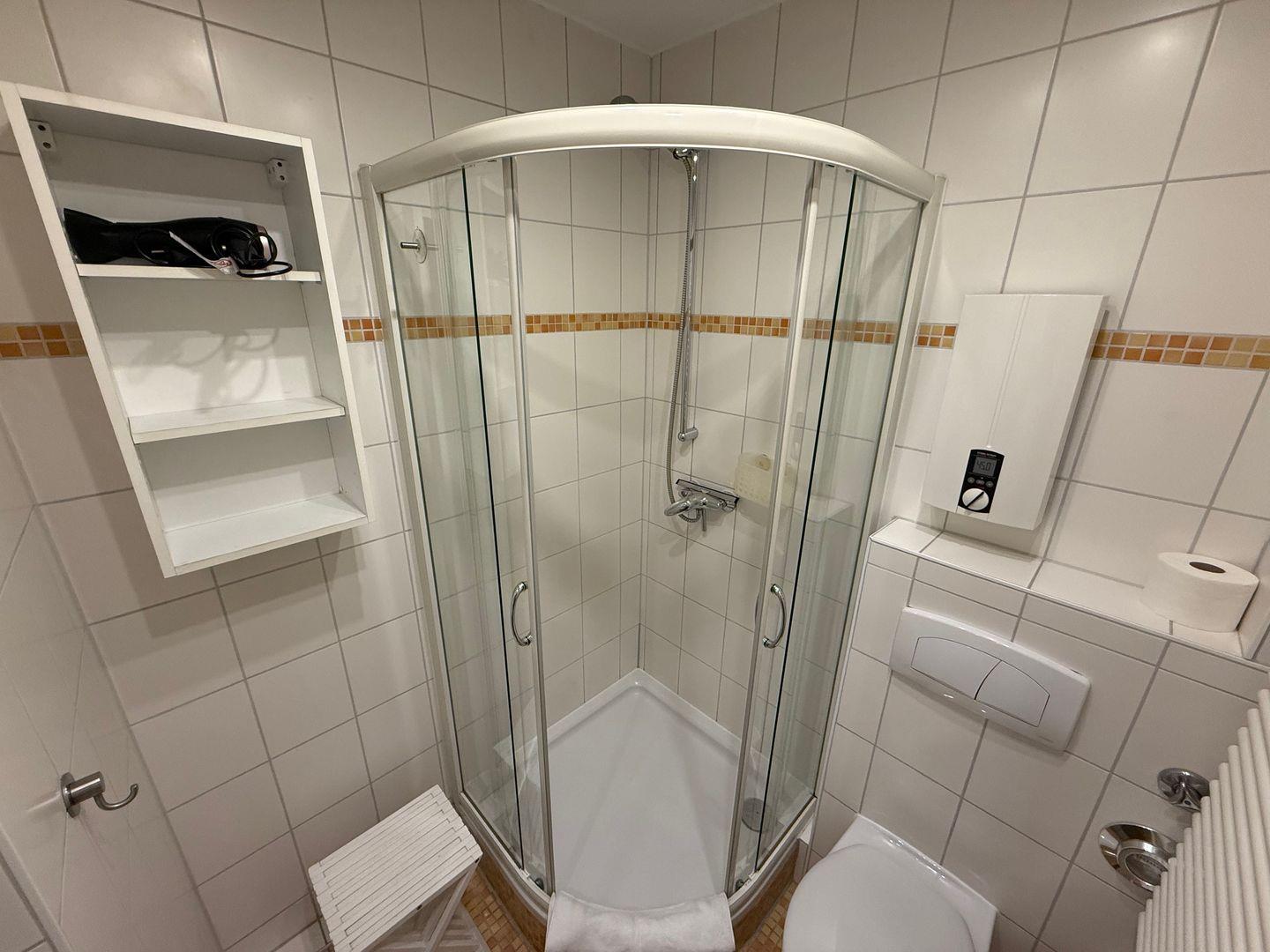 Die komplett ausgestattete, geschlossene Küche bietet Ihnen die Möglichkeit, Ihre Lieblingsgerichte zuzubereiten. Ob Geschirrspüler, Backofen, Kühlschrank, Toaster oder Kaffeemaschine - Sie werden alles finden, was Sie brauchen. Der Esstisch ist der perfekte Ort, um gesellige Mahlzeiten in angenehmer Atmosphäre zu genießen. Für längere Aufenthalte steht zudem eine Waschmaschine und ein gemeinschaftlich nutzbarer Trockner bereit.