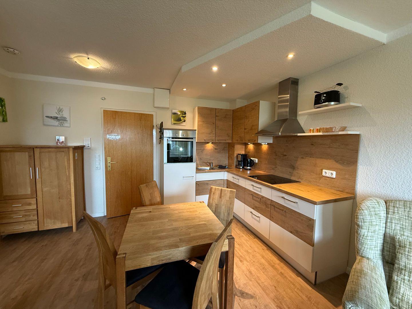 Die geschlossene Küche lässt keine Wünsche offen und bietet Ihnen hochwertige Küchenutensilien, eine Mikrowelle, Spülmaschine, Herd und einen Backofen, um Ihre Lieblingsgerichte zuzubereiten. Genießen Sie Ihre Mahlzeiten in der gemütlichen Atmosphäre der Ferienwohnung oder auf dem eigenen Balkon, wo Sie die frische Seeluft und das Flair von Sylt genießen können.