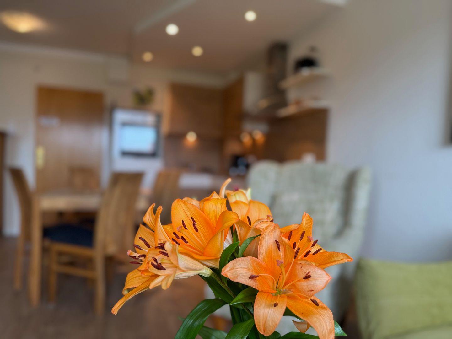 Die Zimmer sind modern und liebevoll eingerichtet, wobei der Wohnbereich mit einem komfortablen Sofa und einem Fernseher ausgestattet ist – der perfekte Ort, um entspannte Abende mit einem Film oder Musik zu genießen. Für Ihr Wohlbefinden sorgt auch die zentrale Heizungsanlage, die auch in kühleren Zeiten eine angenehme Temperatur garantiert.